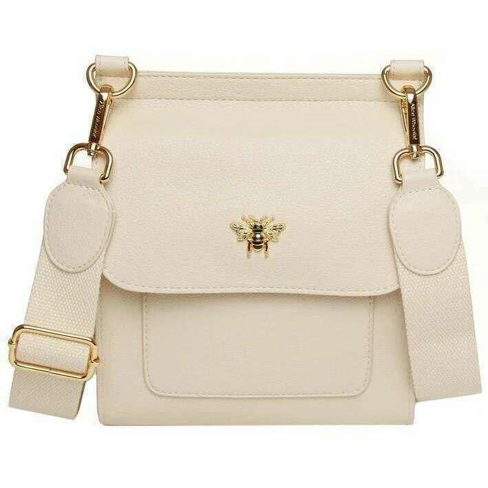 Ce sac à bandoulière Bloomsbury féminin bien fait d'Alice Wheeler London est livré dans une couleur crème pastel et est fabriqué à partir de faux cuir 100% végétalien. Il mesure 18 cm (hauteur) x 20 cm (largeur) x 12 cm (profondeur). Tous les sacs sont complets dans Alice Wheeler London Packaging. Le sac à bandoulière Alice Wheeler London Bloomsbury - Pastel Cream fera un sac de tous les jours magnifique et élégant ou accessoirisera votre tenue du soir lors d'un événement plus formel. Équipé d'une sangle transversale réglable, vous pouvez trouver une longueur qui vous convient le mieux pour le transport confortable. Le Bloomsbury propose une section principale de bonne taille et est sécurisée avec un volet et un fermoir magnétique. Le logo emblématique et élégant de Bumble Bee arrête ce magnifique design ainsi que nommé la marque à l'arrière.