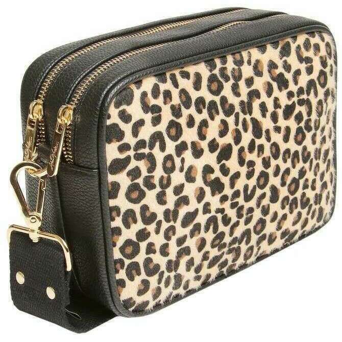 Alice Wheeler London Soho Camera Crossbody Band - Leopard / Black