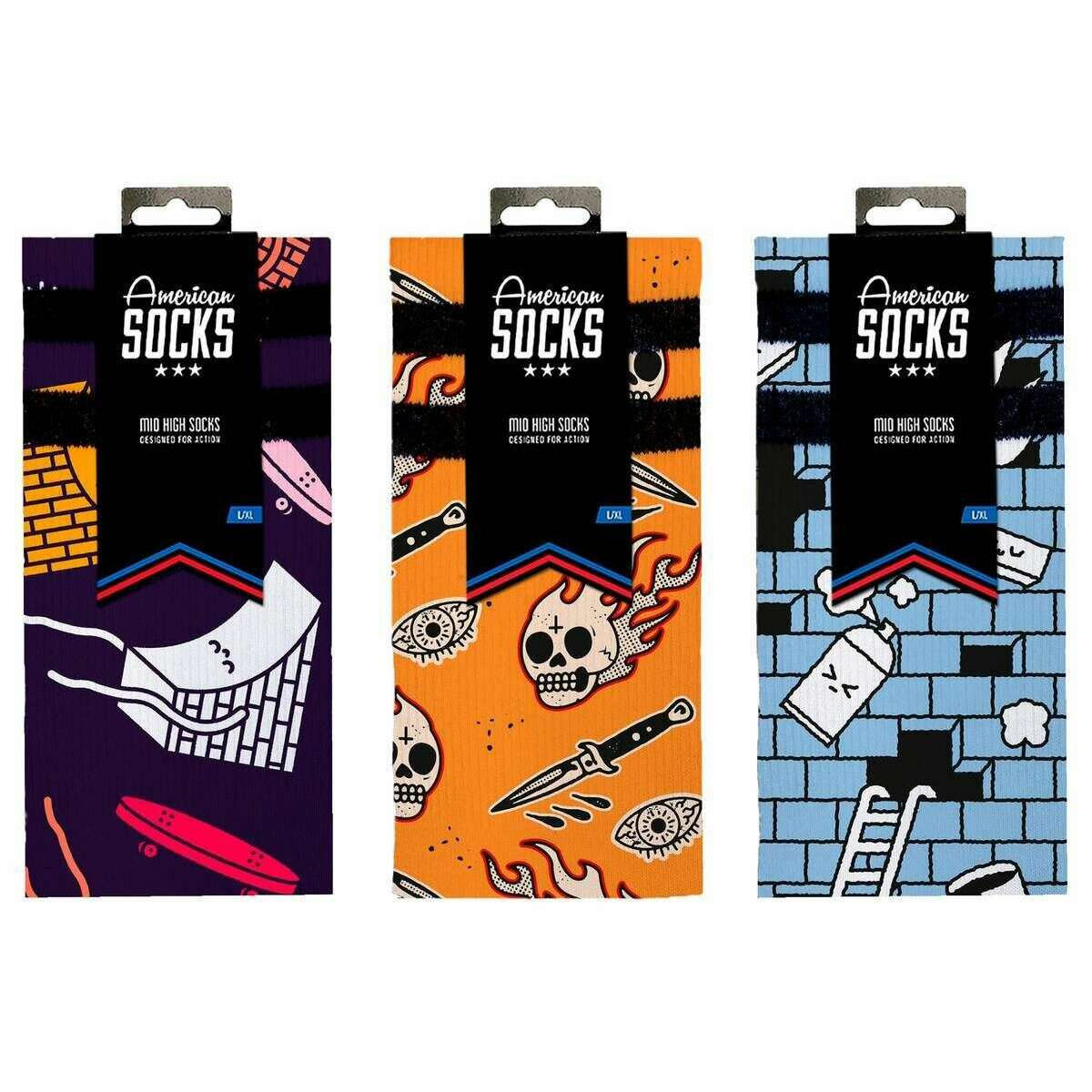 Chaussettes de skateboard américaines - Purple / Orange / Bleu