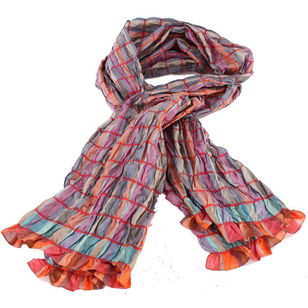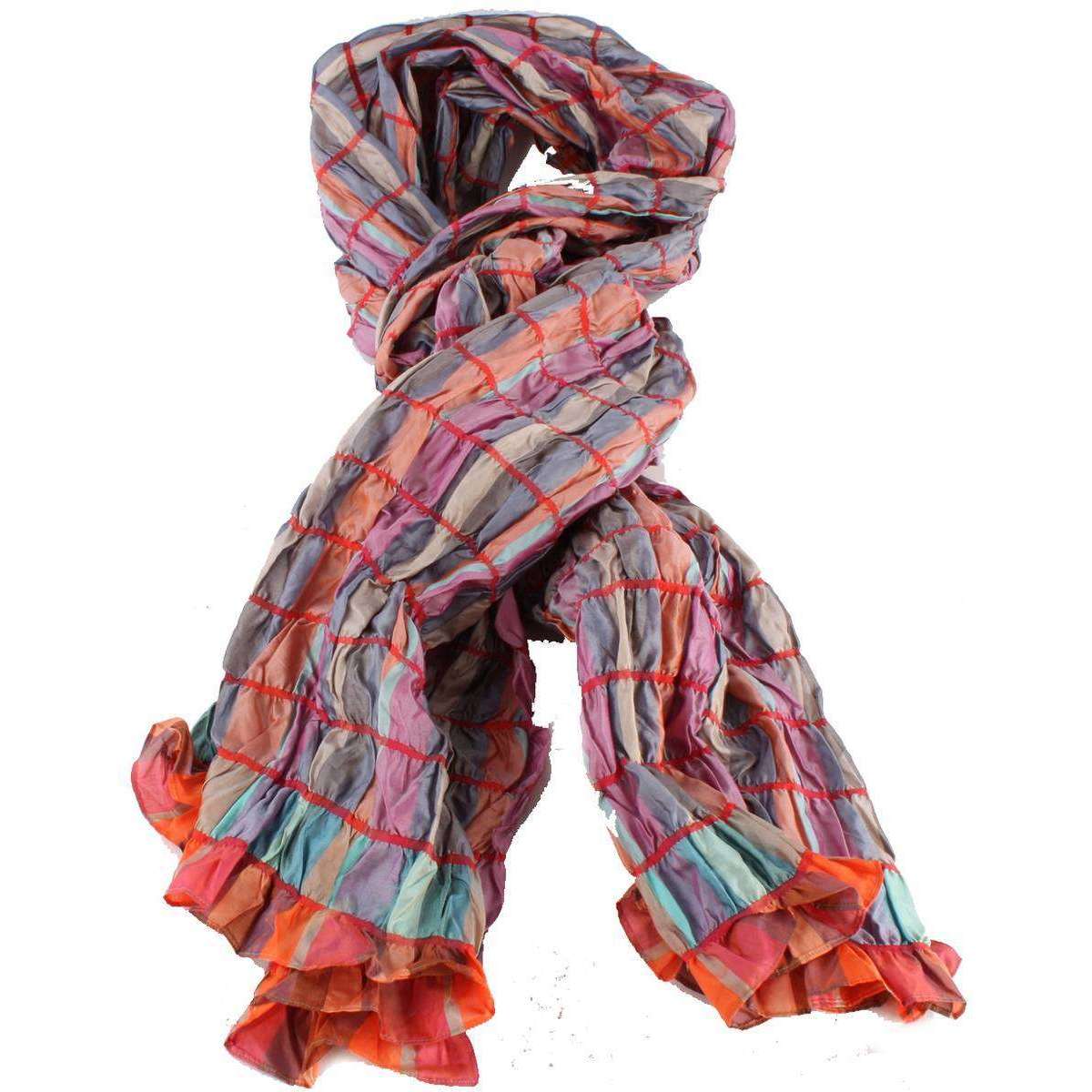 Bassin et arboretum brun metalc check Scarf en soie - rose / turquoise / beige