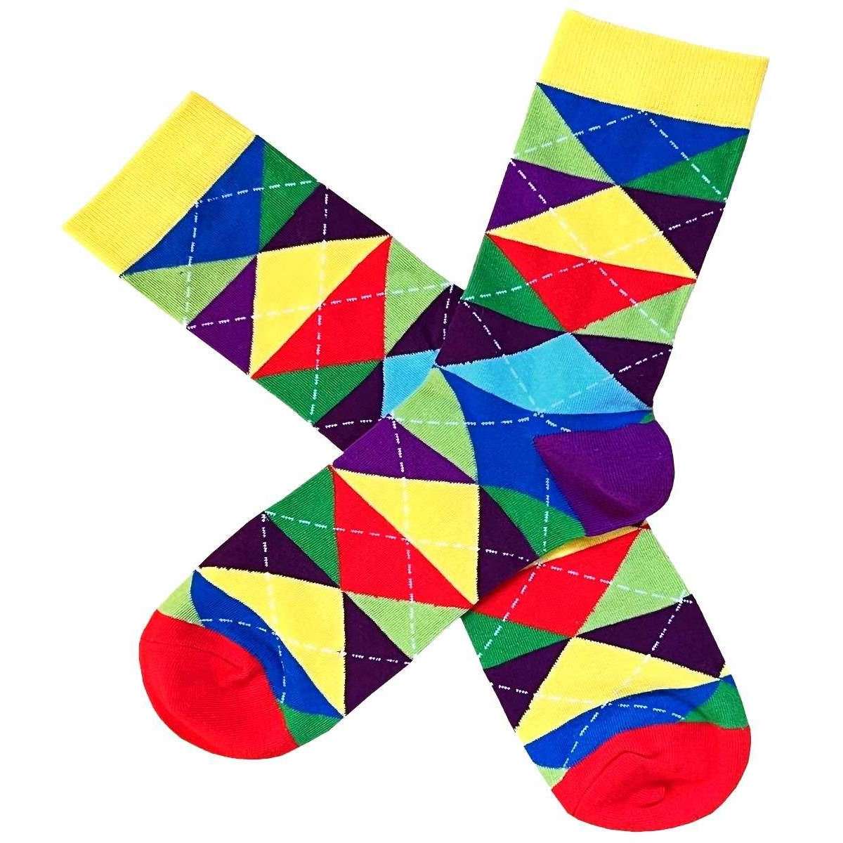 Bassin and Brown Argyle Multi Check Socks - Purple / Jaune / Green / Blue / Sky / Red