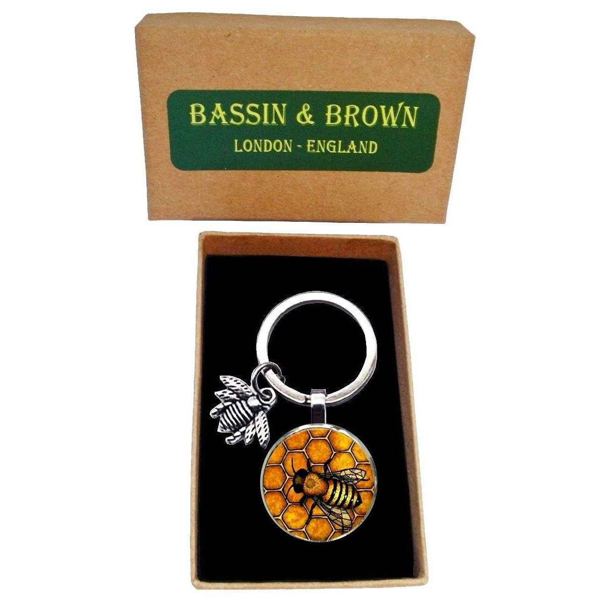 Bassin et anneau de clé d'abeille brun - noir / jaune