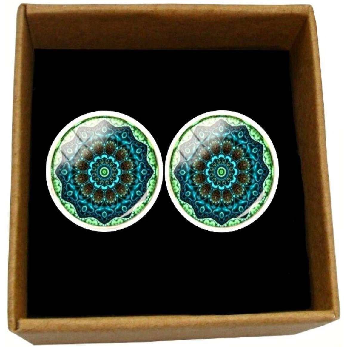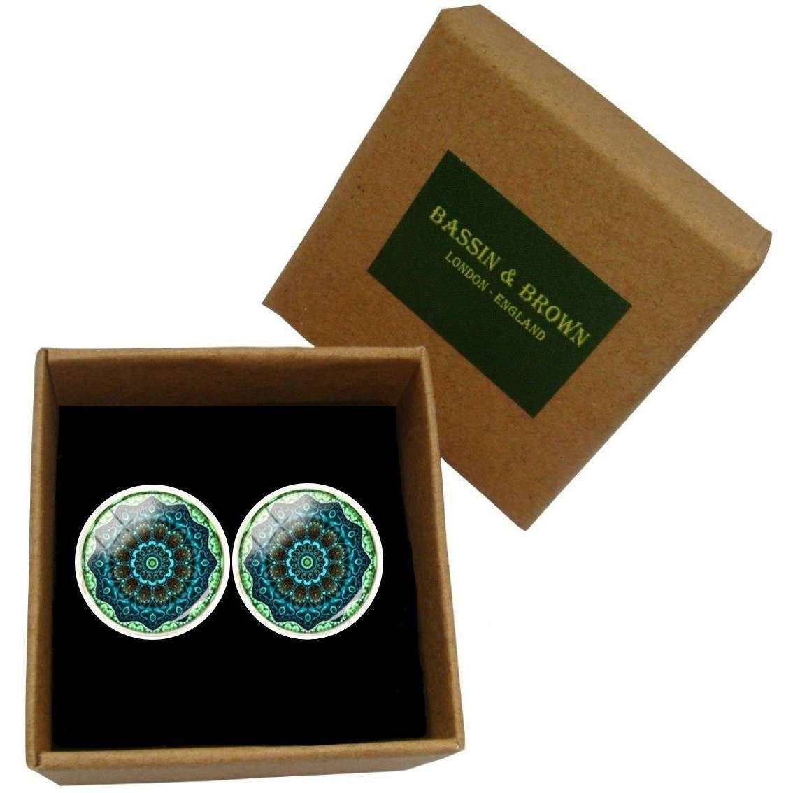 Bassin et Brown Bohemian Swirl Cufflinks - Mint / Green / Navy