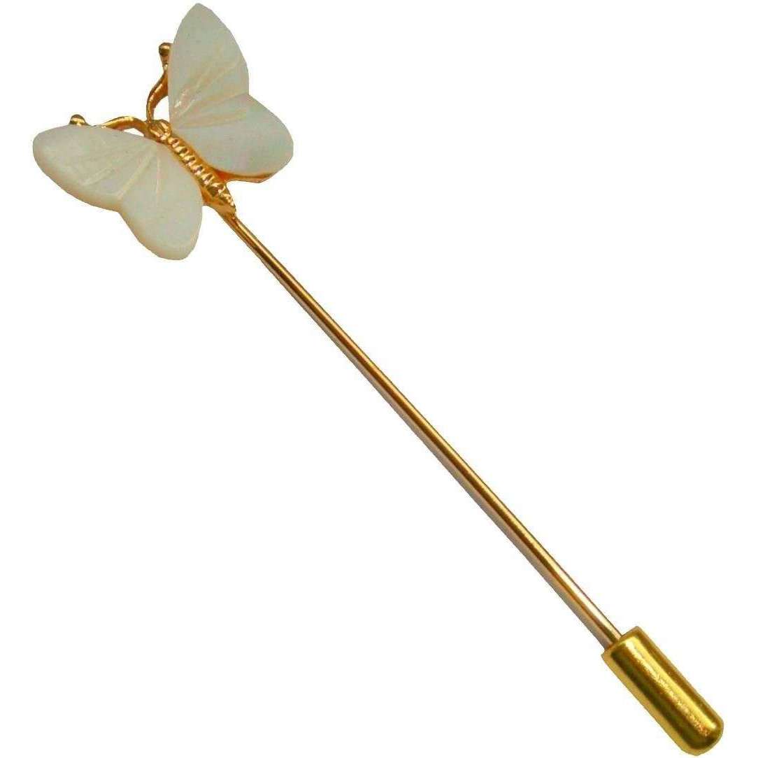 Bassin et épingle de revers de veste de papillon marron - blanc / or