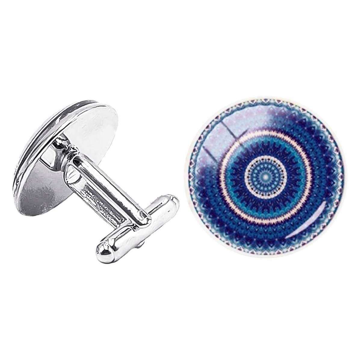 Bassin et Brown Concentric Cercles Cufflinks - Bleu / Blanc