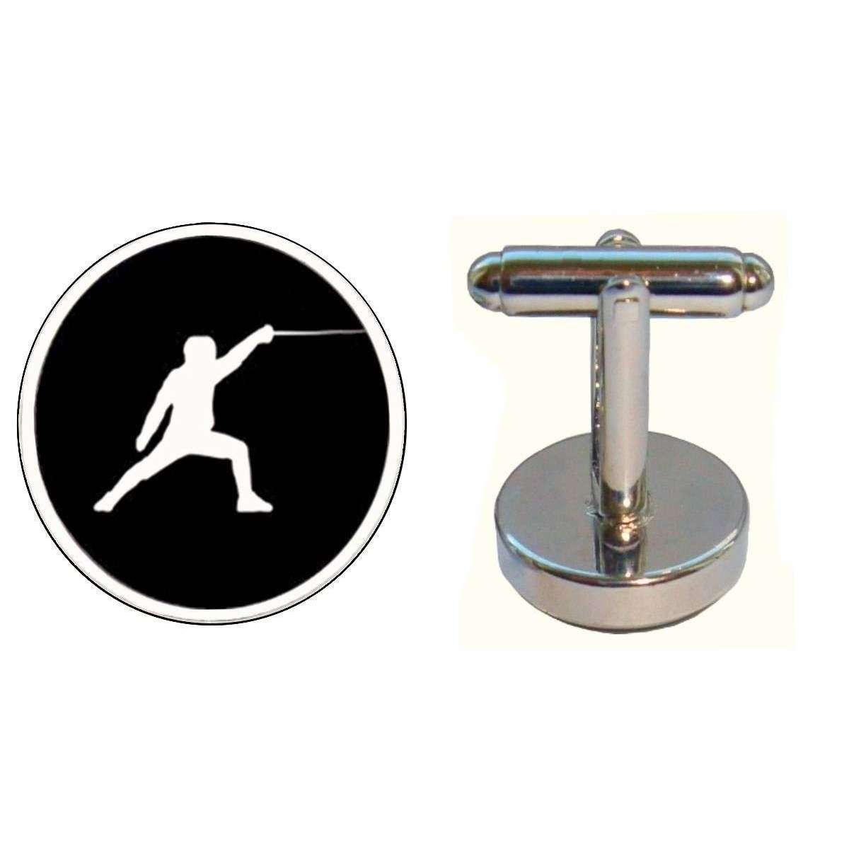 Ces boutons de manchette d'escrime pour hommes sont façonnés par la marque Bassin et Brown de couleur noire et sont fabriqués à partir de métal plaqué du rhodium et de cabochon en verre. Tous les boutons de manchette sont livrés avec Bassin et Brown Packaging. Les bouillons de manchette de basse et brun - Black / White sont la décoration personnelle parfaite pour votre chemise. Avec ces boutons de manchette d'escrime de silhouette, vous pouvez ajouter un élément de style et de flair à votre tenue. Environ 16 mm de diamètre, ces boutons de manchette frappants sont enfermés dans un cabochon en forme de verre transparent et présentent une conception de raccord arrière pivotant qui facilite l'ajout et le retrait des chemises. Un article incontournable, ces boutons de manchette font le cadeau parfait pour l'homme qui aime l'escrime!