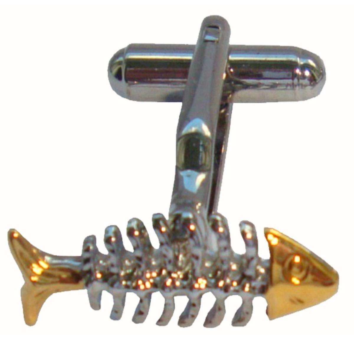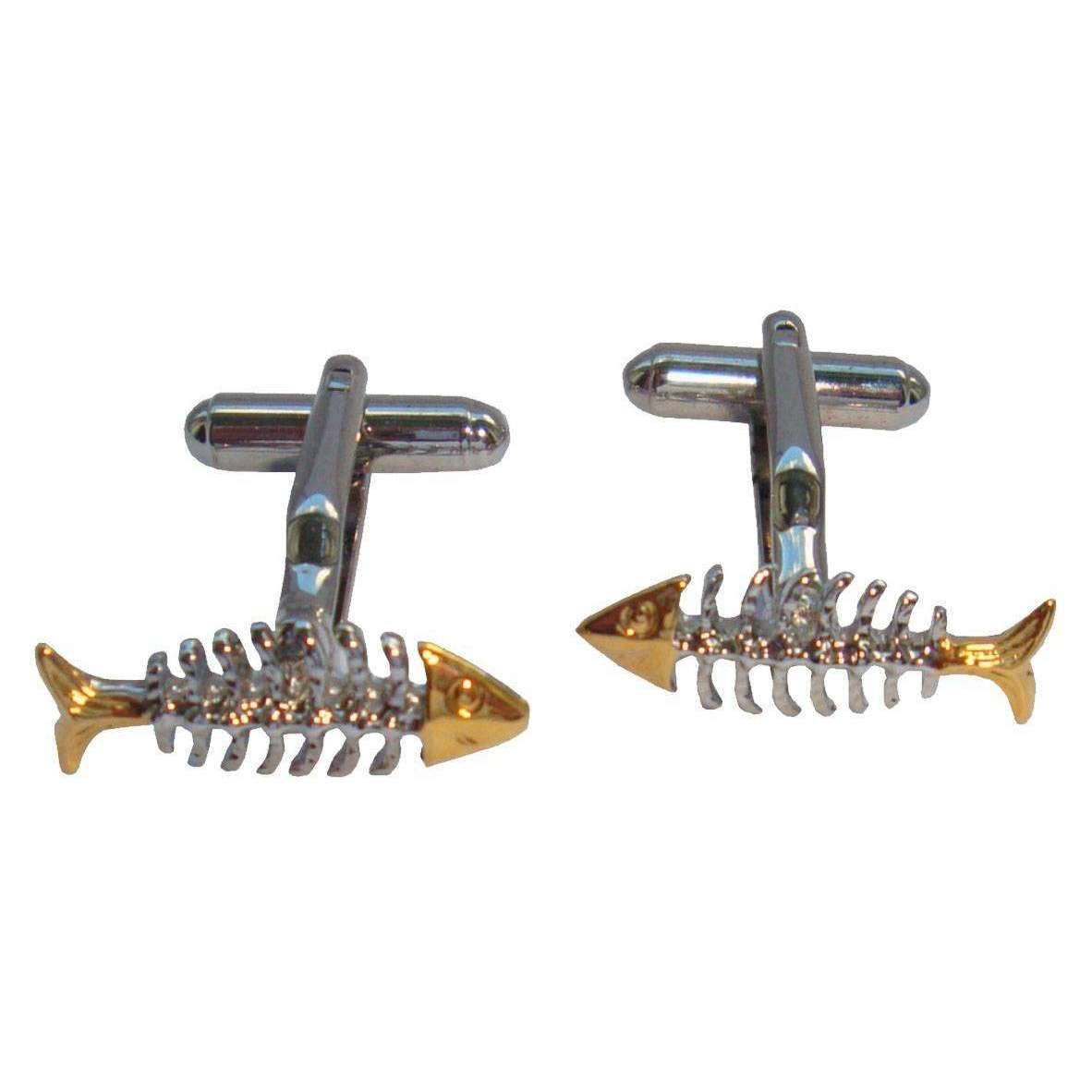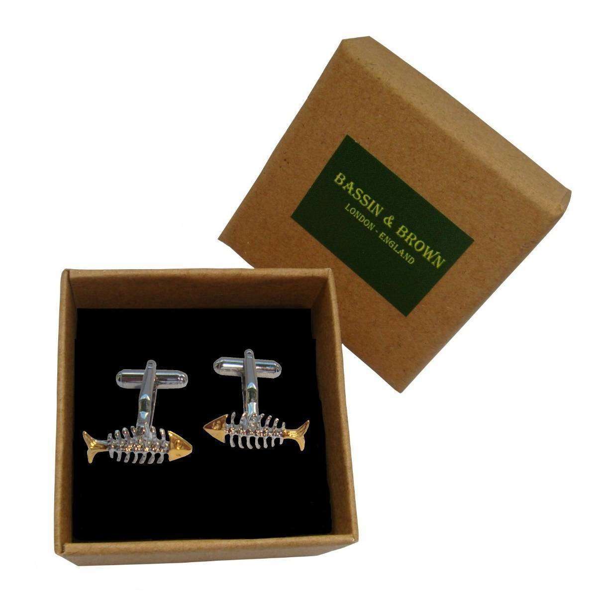 Bassin et bruns de poissons squelettes CuffLlinks - or / argent
