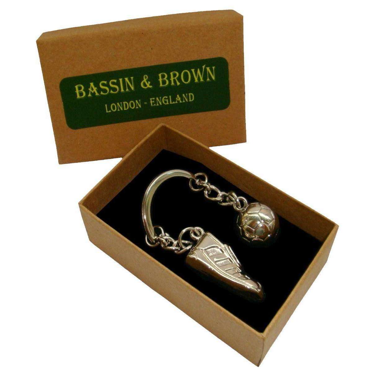 Bassin et Brown Football Boot and Ball Keyring - Silver
