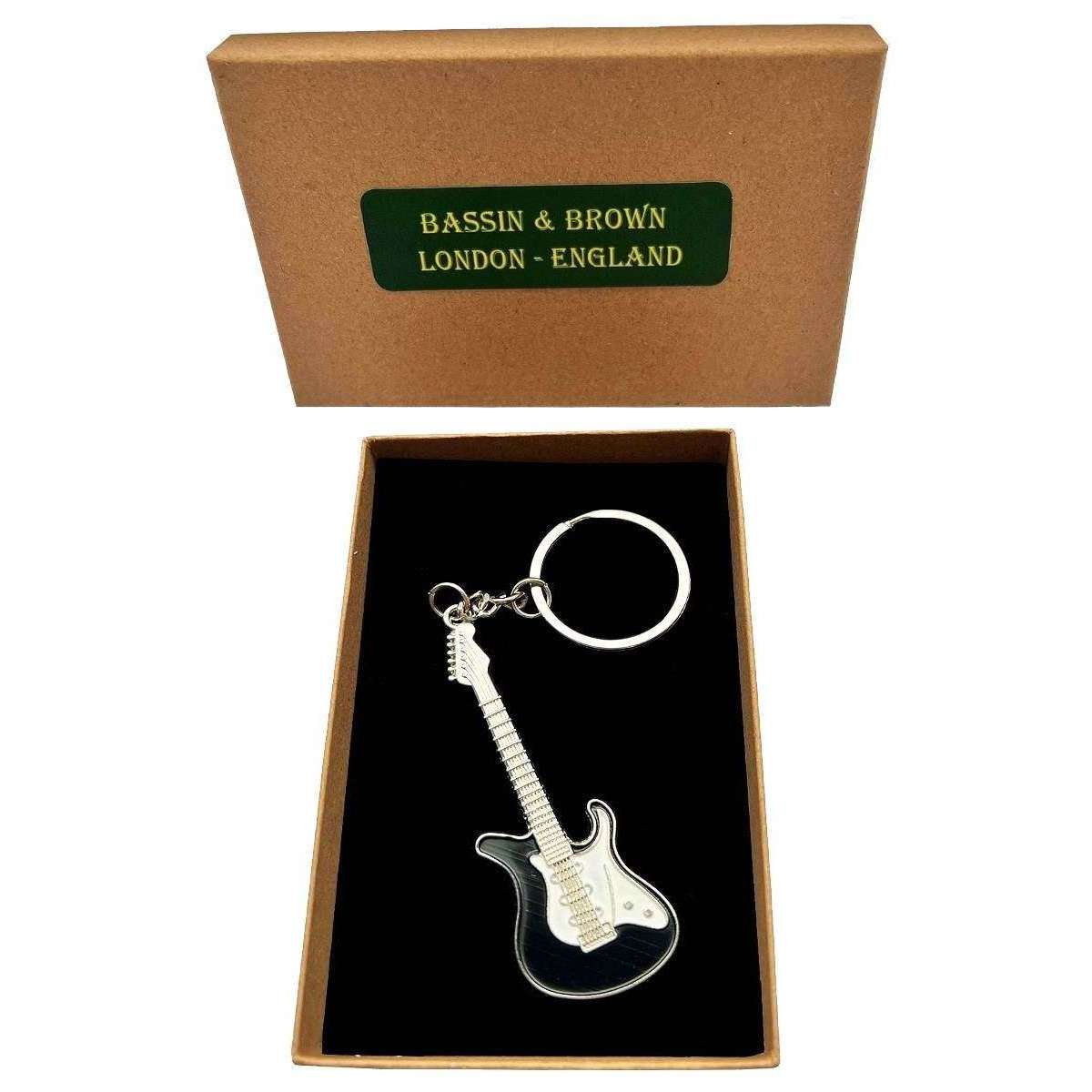 Bassin et Brown Guitar Key Ring - noir / blanc / argent