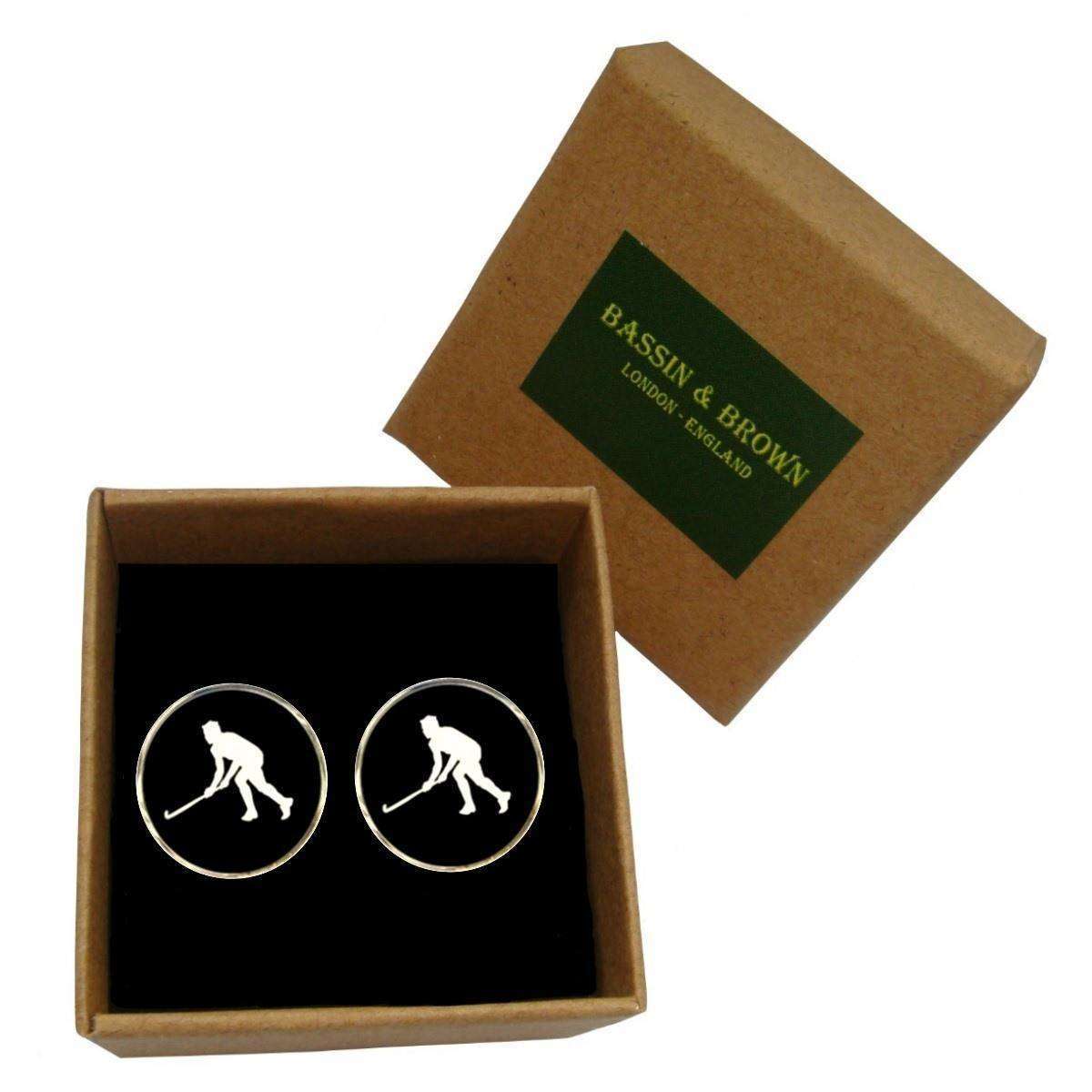 Bassin et Brown Hockey Player boutons de manchette - Noir / blanc