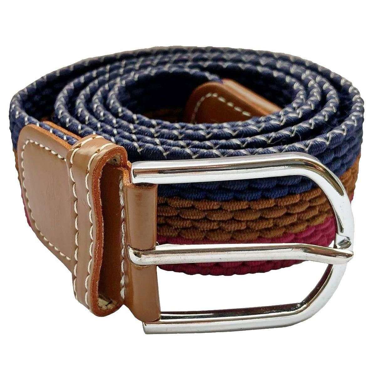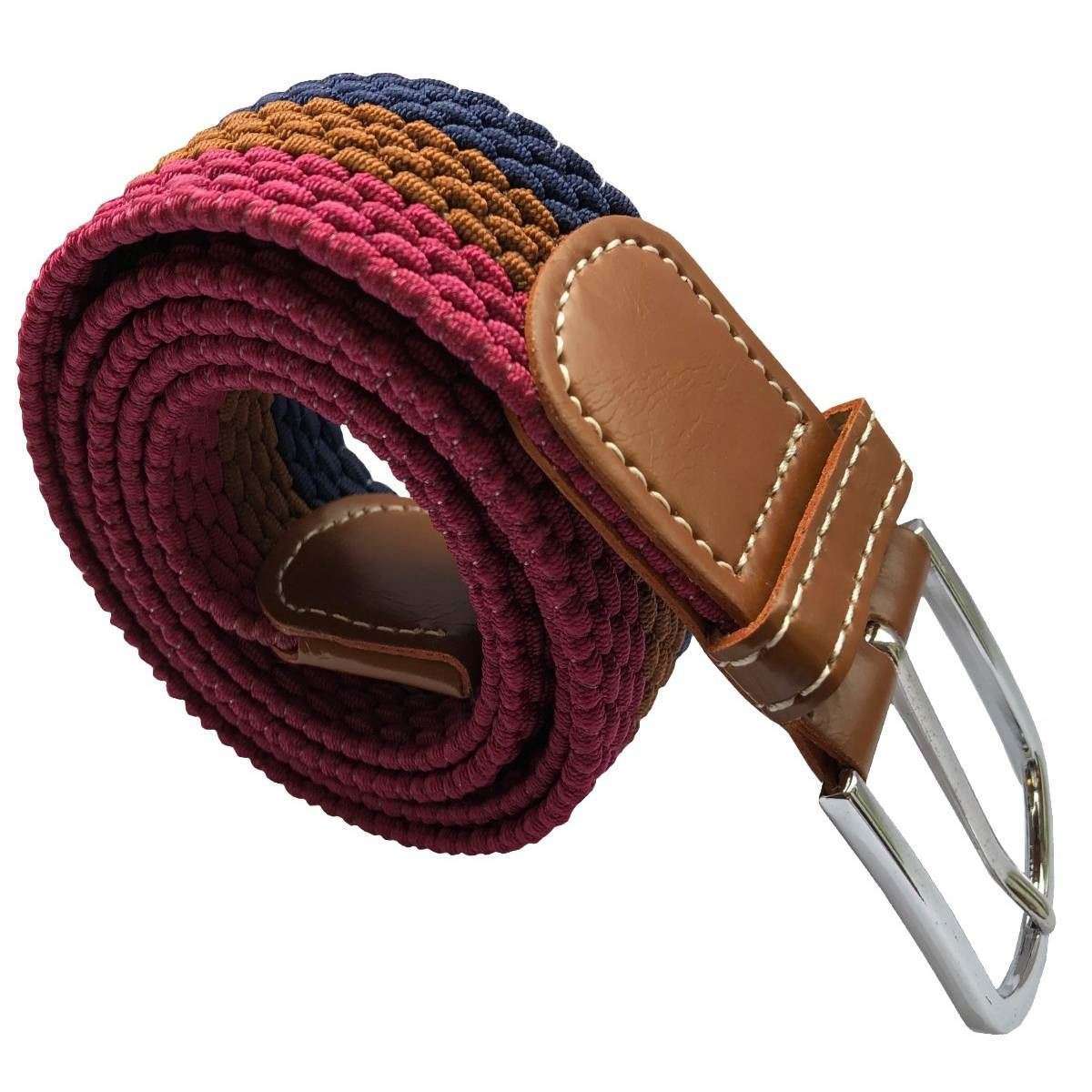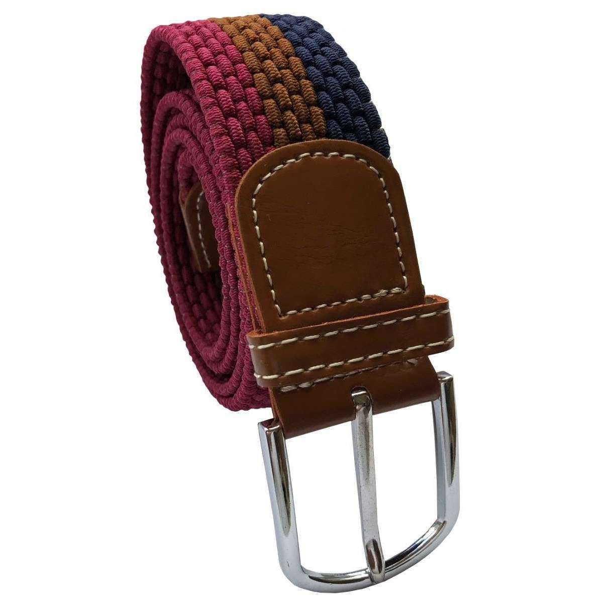 Bassin et brun Horizontal Stripe Woven Belt - Navy / Wine / Brown