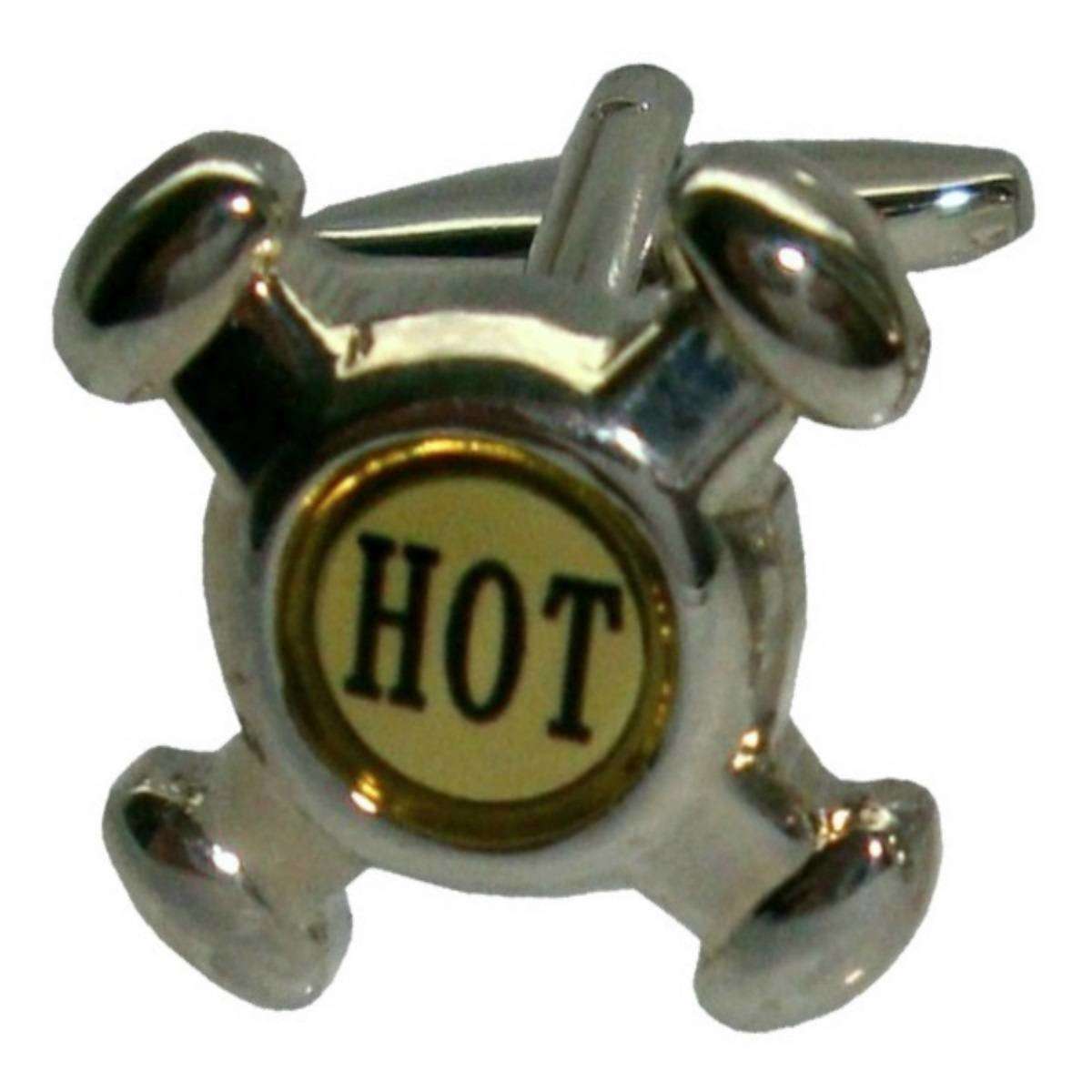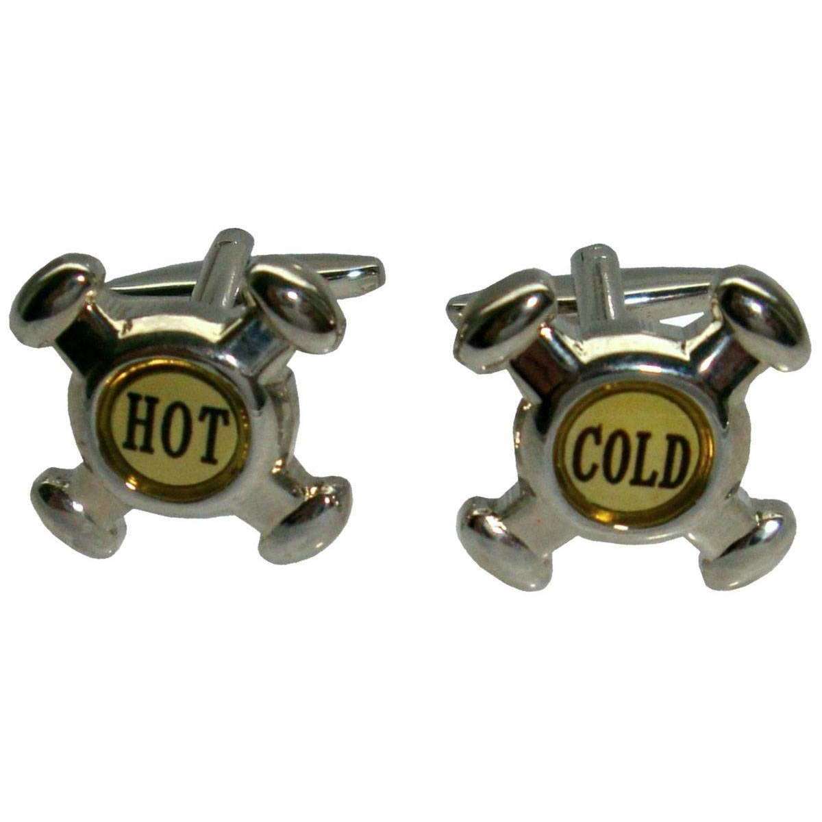Bassin and Brown Hot and Cold Tap Cufflinks - Silver / Yellow