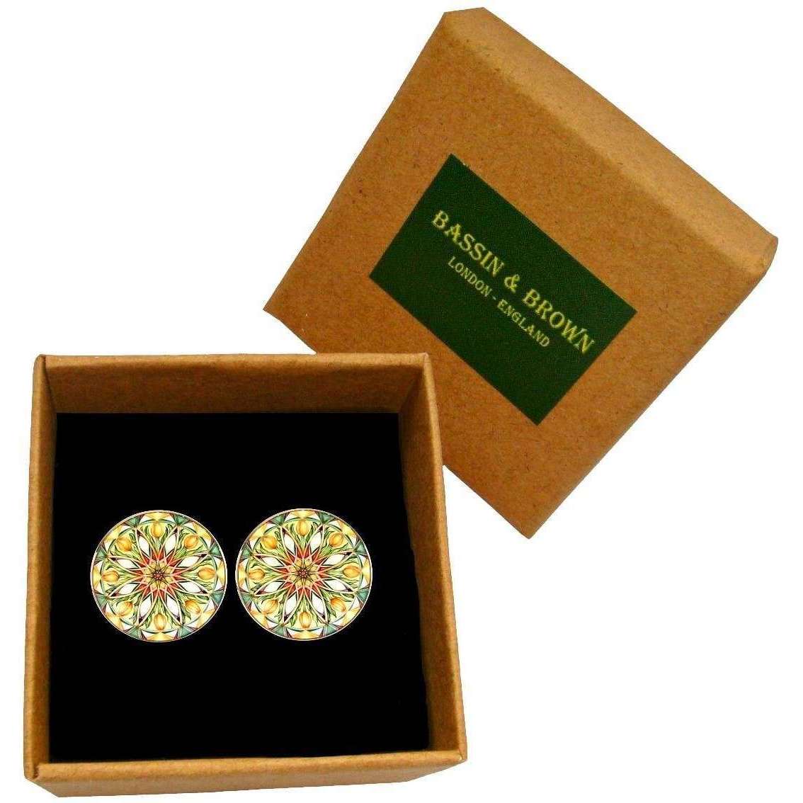 Ces boutons de manchette à fleurs de kaléidoscope masculin par la marque Bassin et Brown sont fabriqués à partir de plaque de rhodium et de cabochon en verre photo et sont présentés en blanc. Tous les boutons de manchette sont complets dans une boîte de présentation Bassin et Brown. Les boutons de manchette à fleurs de bassin et brun kaléidoscope - vert / blanc / orange offrent une touche luxueuse à la tenue formelle de tout gentleman. Flair et Style vont de pair avec ces superbes boutons de manchette qui auront la partie à n'importe quelle occasion, terminant votre chemise ou votre veste. Équipé d'un dos pivotant simpliste, ils sont agréables et faciles à affronter et à faire leur usage sans effort.