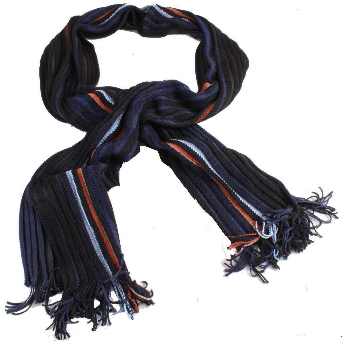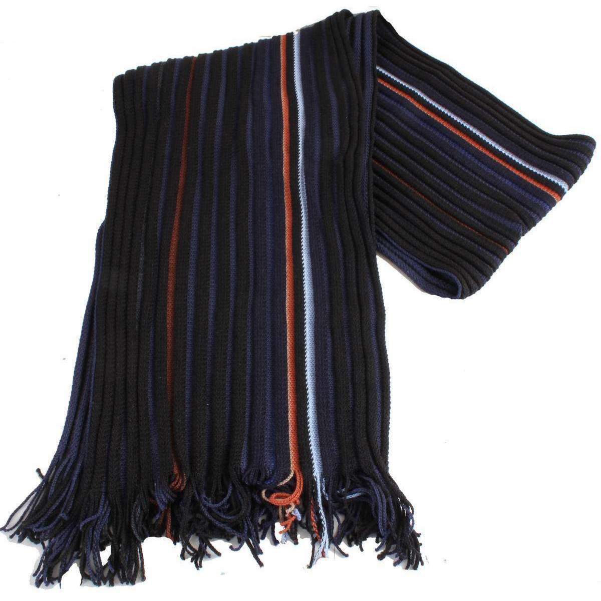 Écharpe en laine rayée de bassin et brun kenyon - marine / noir / orange