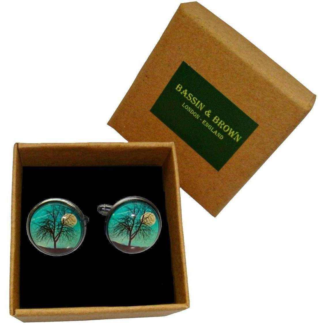 Présentant les boutons de manchette des arbres et lun sans feuilles de ces hommes par Bassin et Brun, ils sont fabriqués à partir d'une plaque de rhodium et d'un cabochon en verre photo de couleur bleu / blanc / noir. Tous les boutons de manchette sont complets dans une boîte de présentation Bassin et Brown. Les bouillons de manchette bassins et bruns sans feuilles - bleu / blanc / noir font un choix étonnant pour terminer votre tenue parfaitement à ces occasions spéciales. Un must pour tout gentleman, ces boutons de manchette accrocheurs offrent un ajout luxueux et garderont parfaitement votre manchette de chemise. Fabriqué à une qualité étonnante et équipé d'une barre en T pivotante, les attacher à votre manchette est sans effort.