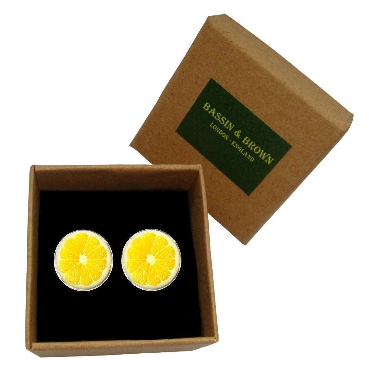 Bassin et boutons de manchette de fruits au citron brun - Jaune