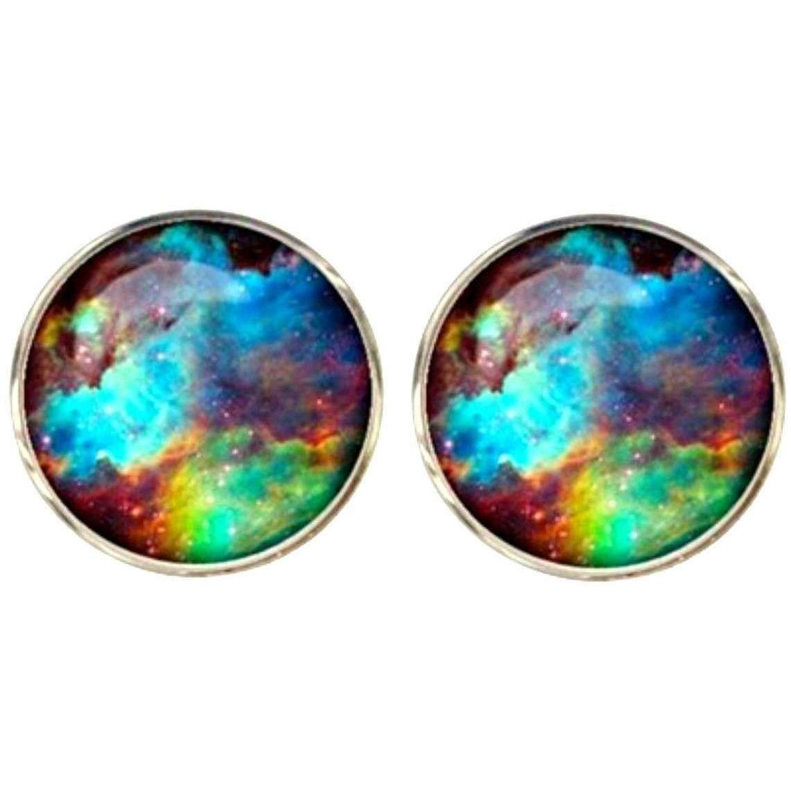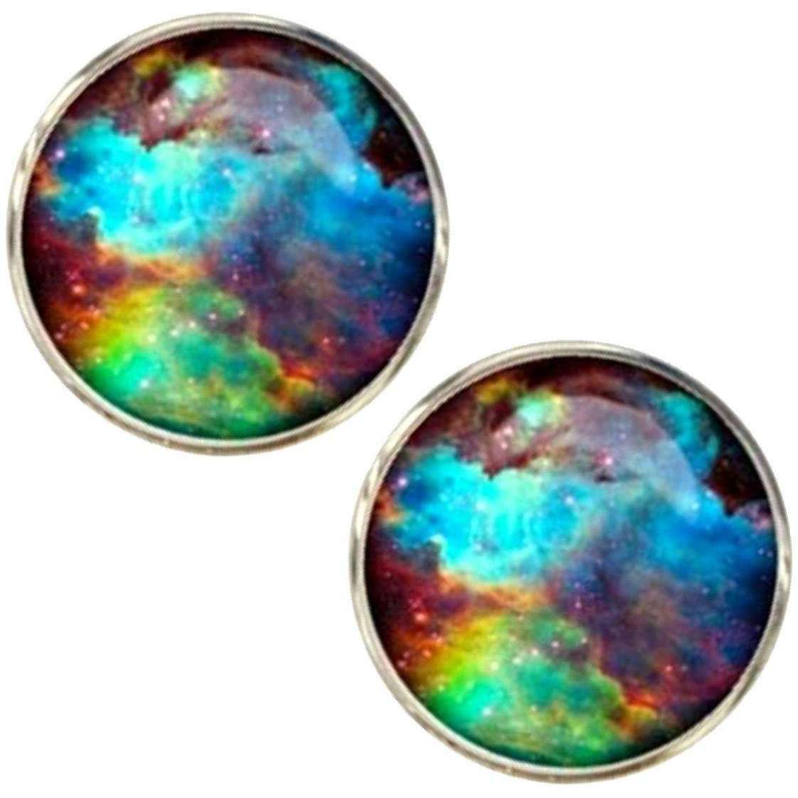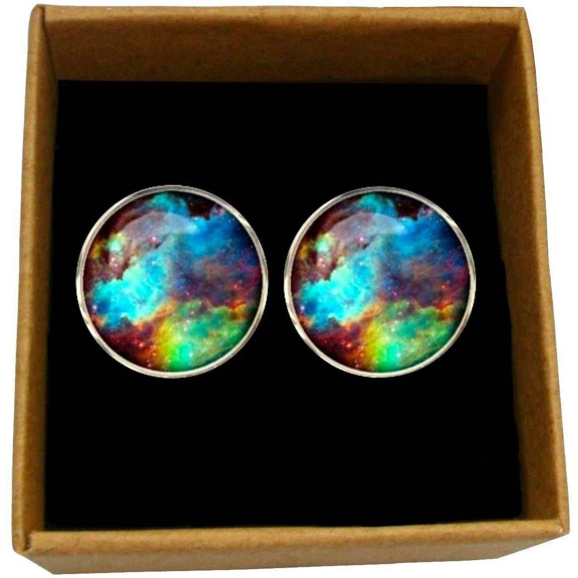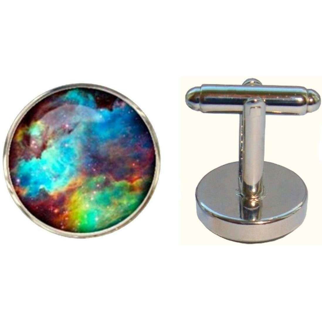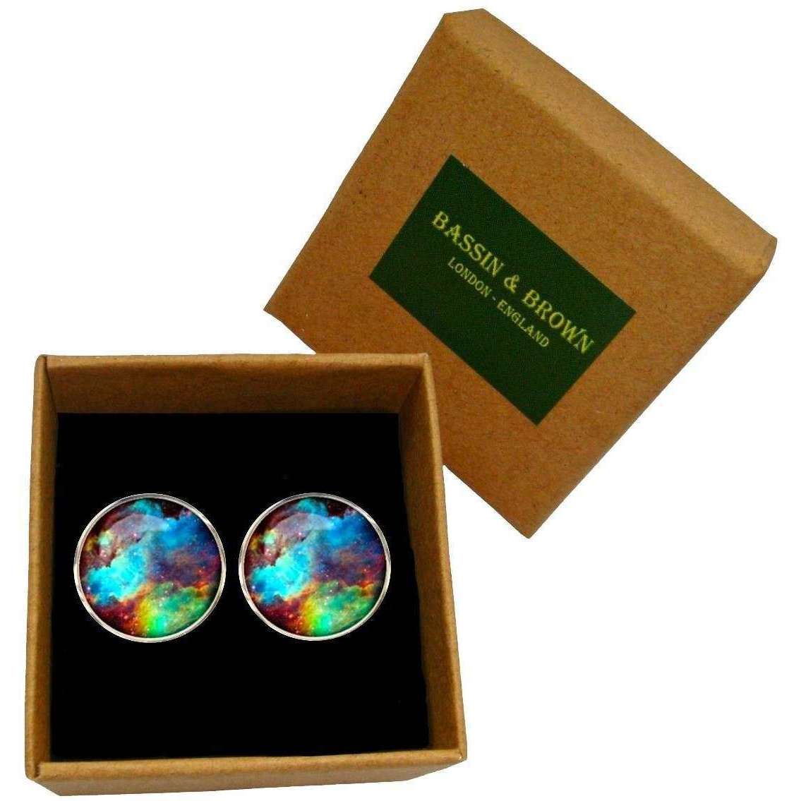 Bassin et nébuleuse brune et boutons de manchette de galaxie - bleu / vert / vin