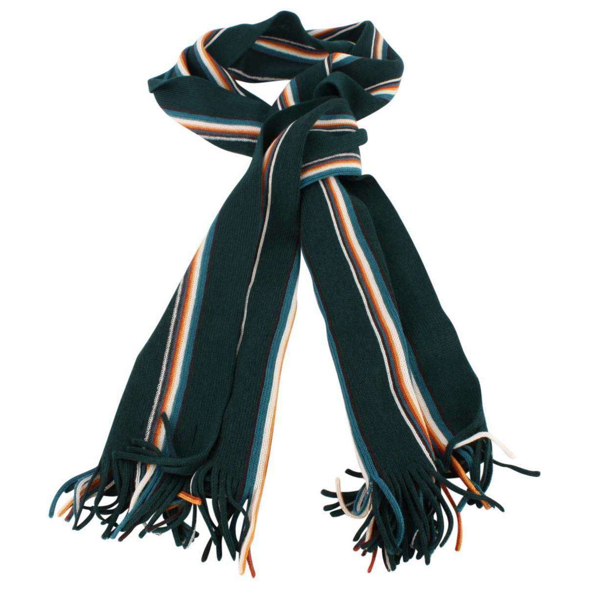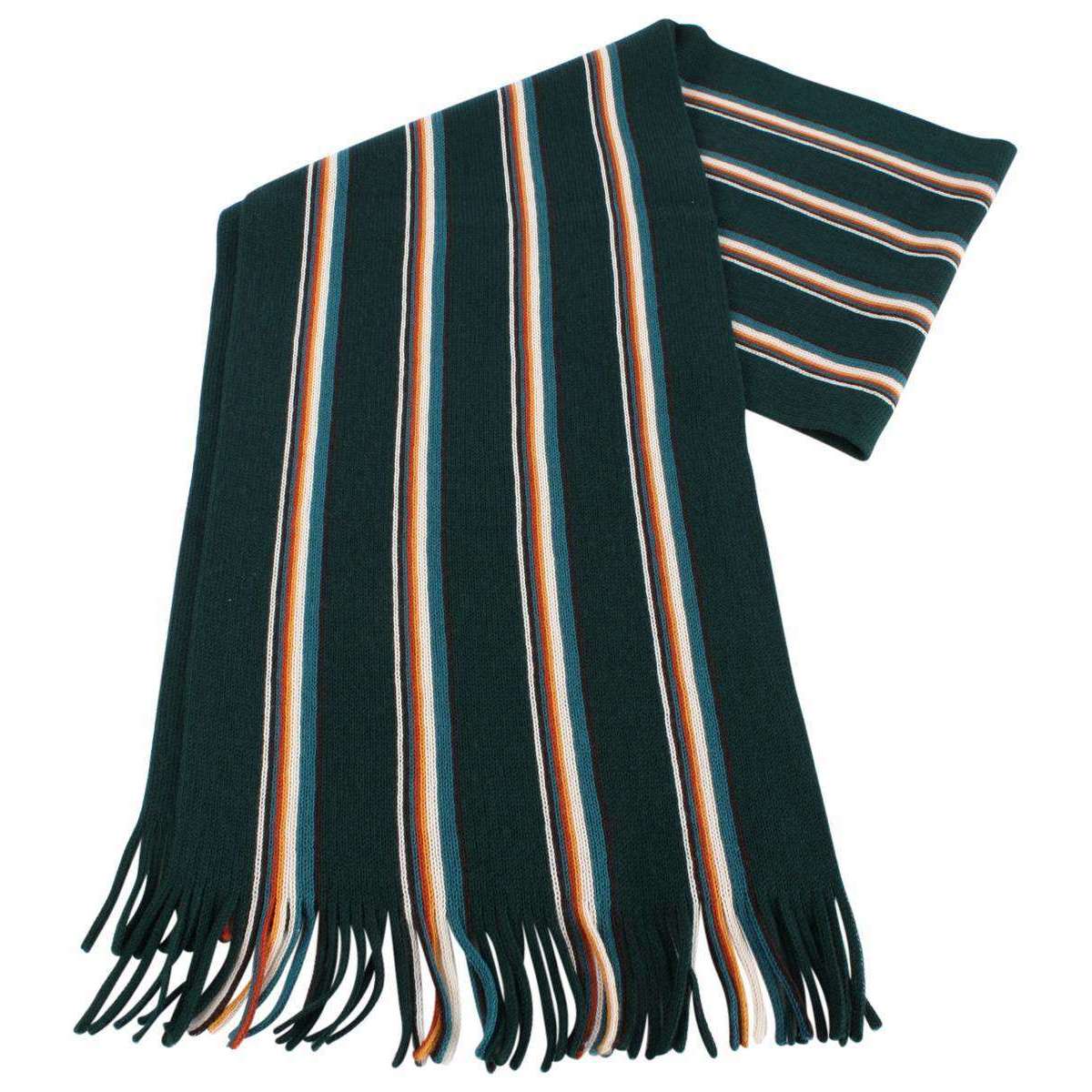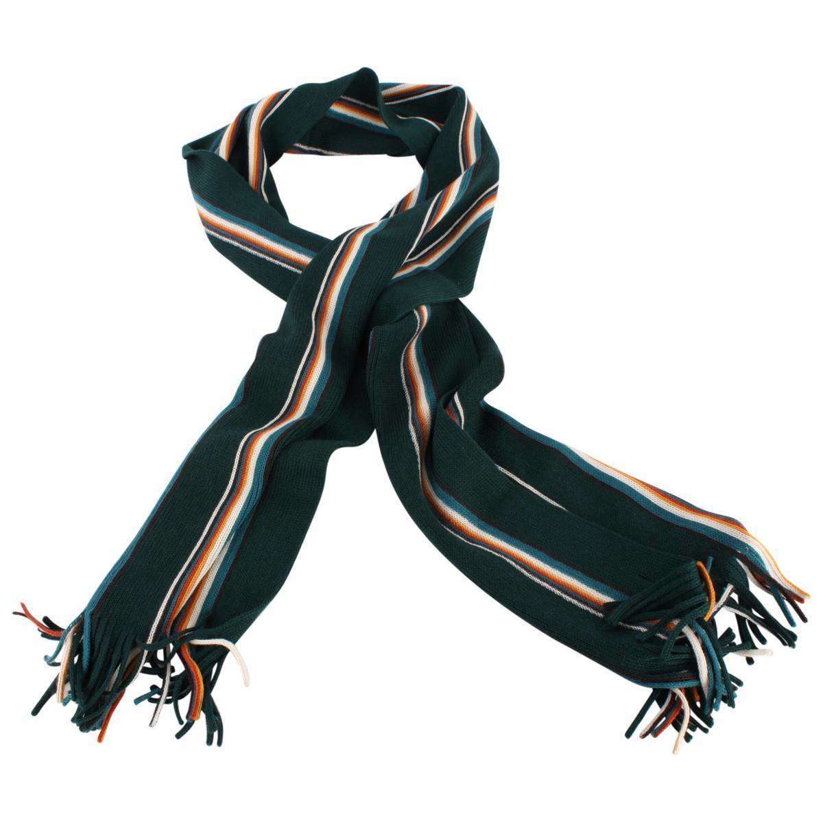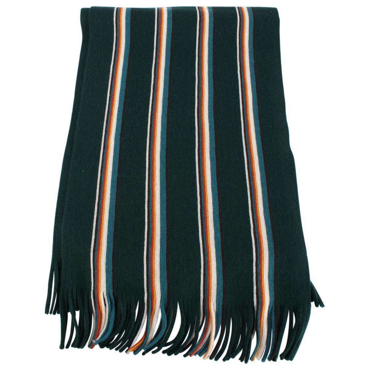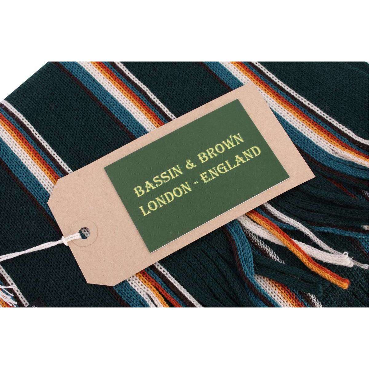 Écharpe en laine rayée de bassin et marron - vert / crème / tango