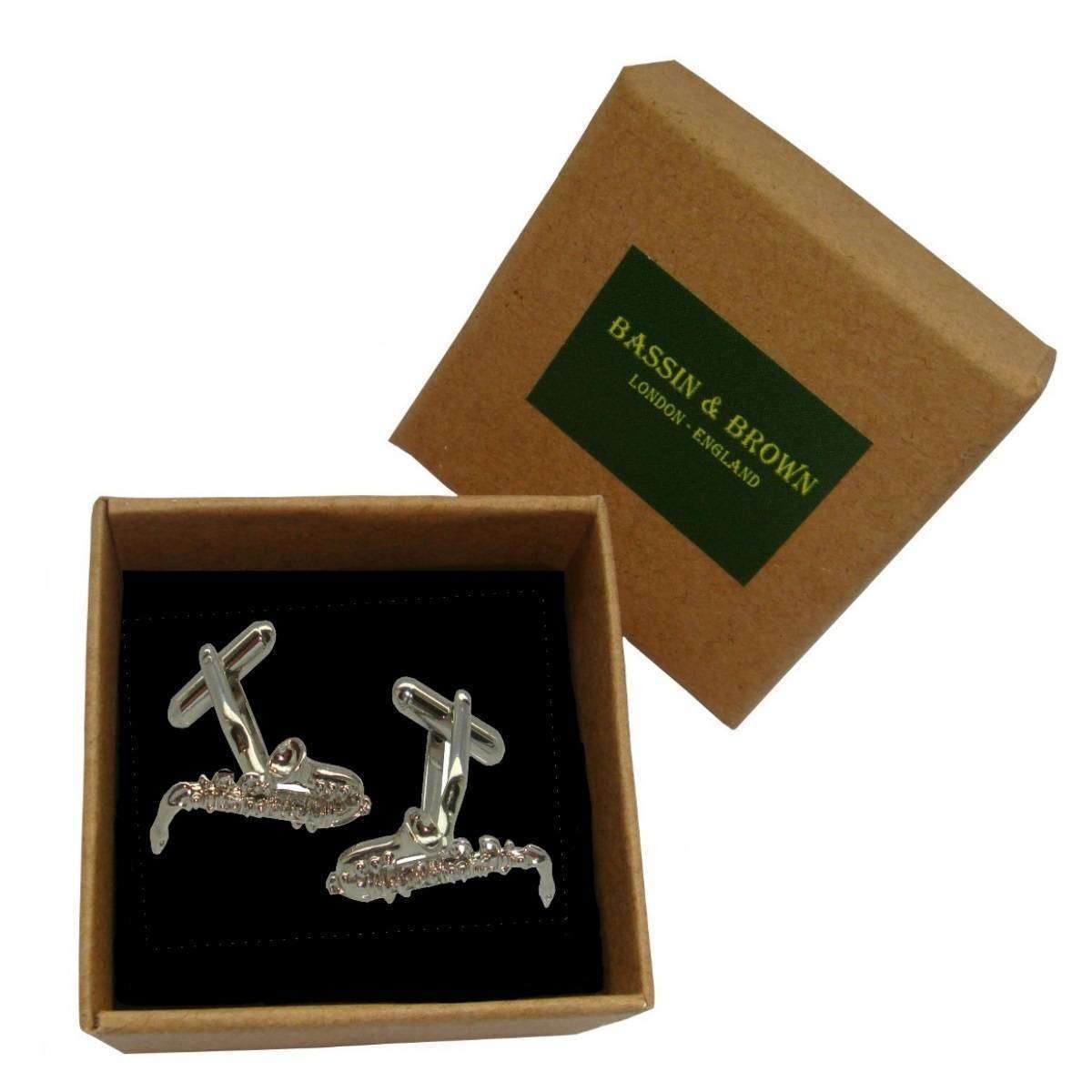Ces boutons de manchette de saxophone pour hommes ont été fabriqués à partir de rhodium plaque, présentés dans une couleur argentée et sont de la marque Bassin and Brown. Tous les boutons de manchette sont complets dans la boîte de boutons de manchette recyclable Bassin et marron. Les boutons de manchette Bassin et Brown SAXOPHONE - Silver ont été conçus avec des détails à l'esprit. Ceux-ci sont idéaux pour ceux qui aiment le jazz ou la musique en général. Garanties pour pimenter votre tenue, celles-ci sont faciles à ajouter et à retirer de votre tenue en raison de leur mécanisme pivotant.