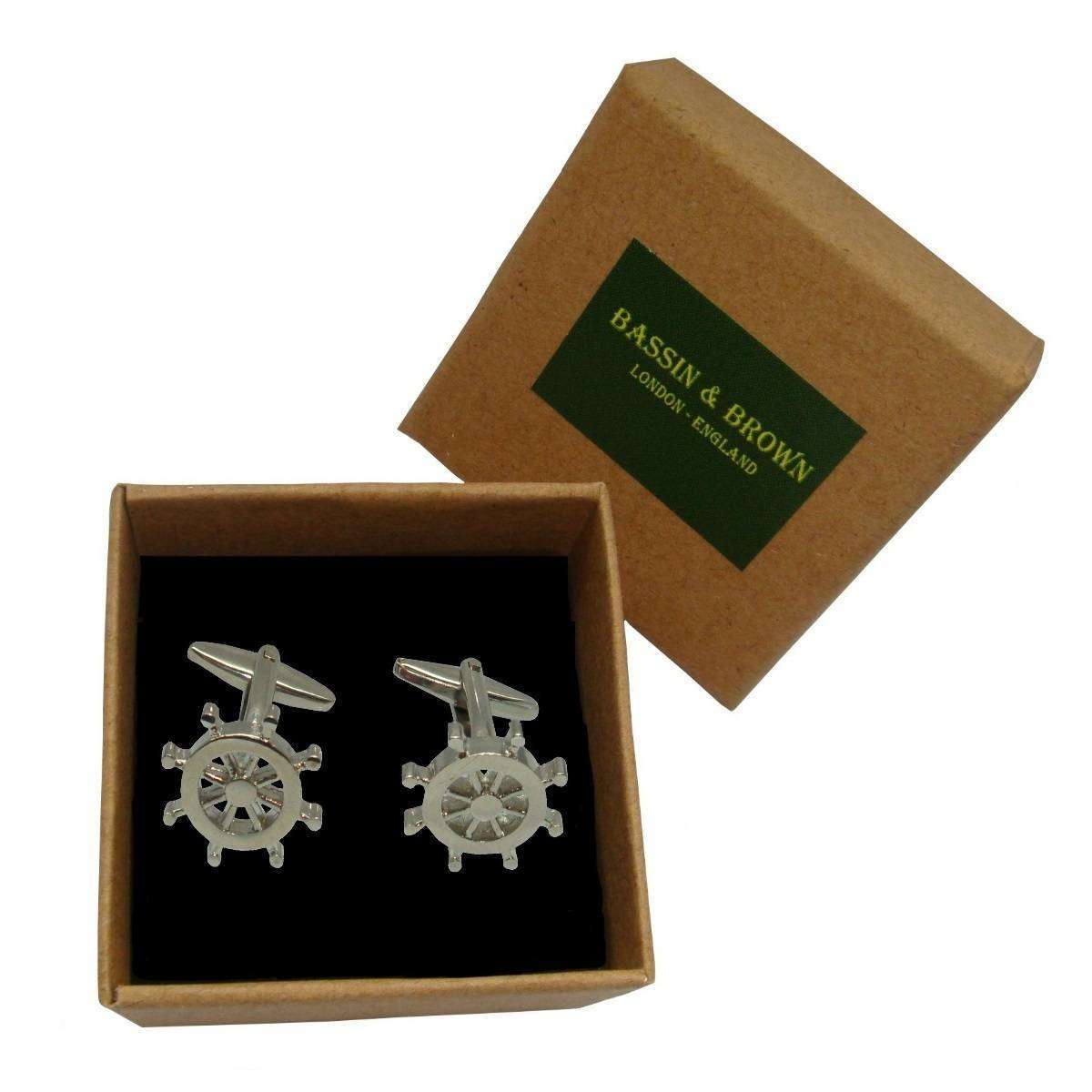 Ces boutons de manchette pour hommes de navire ont été fabriqués à partir de rhodium plaque, présenté dans une couleur argentée et sont de la marque Bassin and Brown. Tous les boutons de manchette sont complets dans la boîte de boutons de manchette recyclable Bassin et marron. Le Bassin et Brown Ship Rater Wheel Blinks - Silver a été fabriqué pour ces gentleman de voile. Ces boutons de manchette sont détaillés de manière simplifiée avec une finition polie brillante. L'ajout et le retrait de vos poignets n'ont jamais été aussi simples en raison de leur mécanisme pivotant. Garanti de ne pas décevoir.
