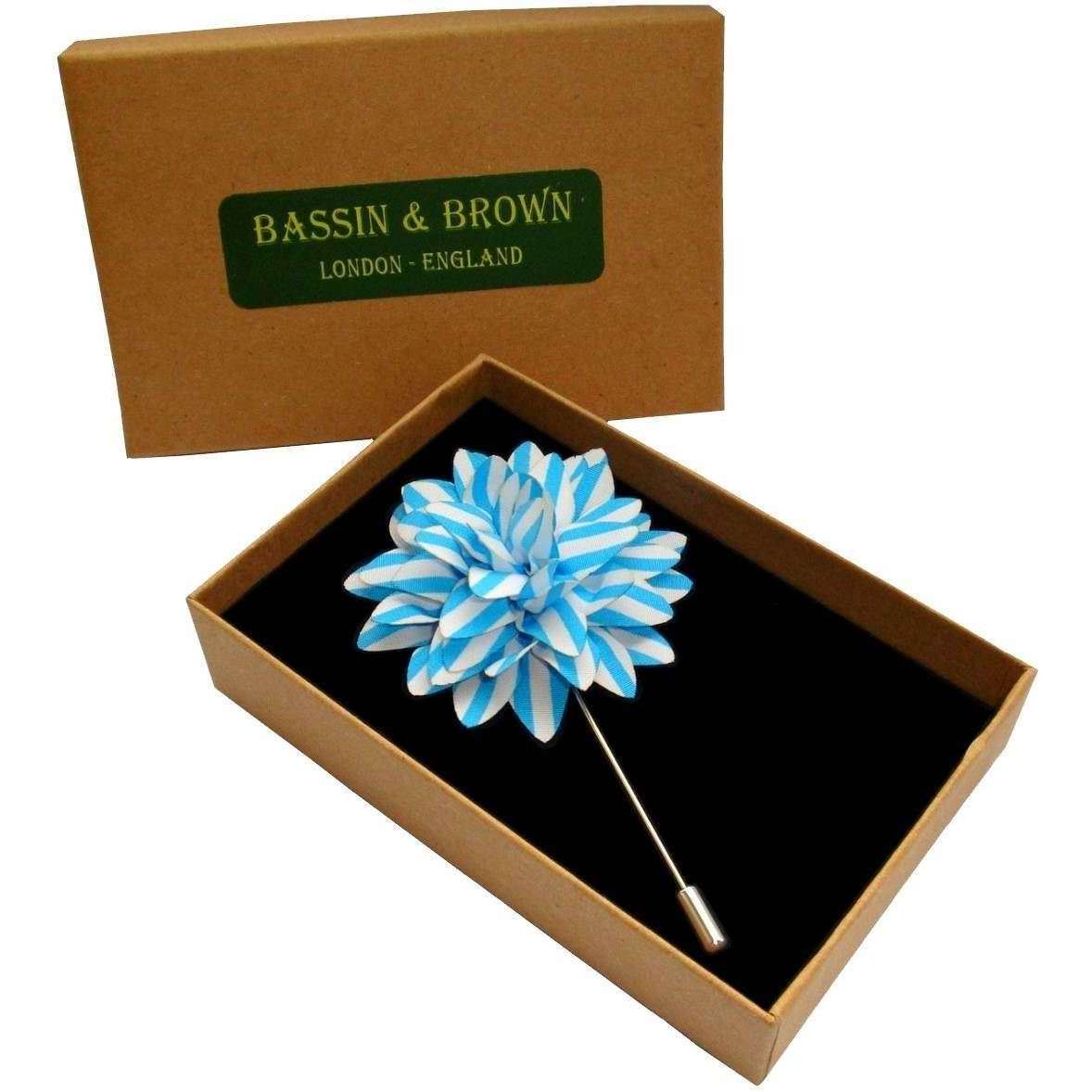 Bassin et Brun Stripe Flower Revers Pin - Bleu / Blanc