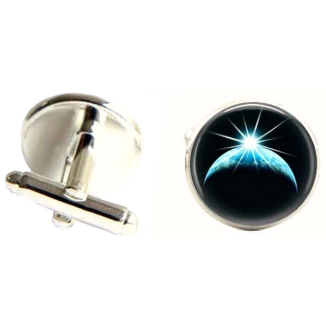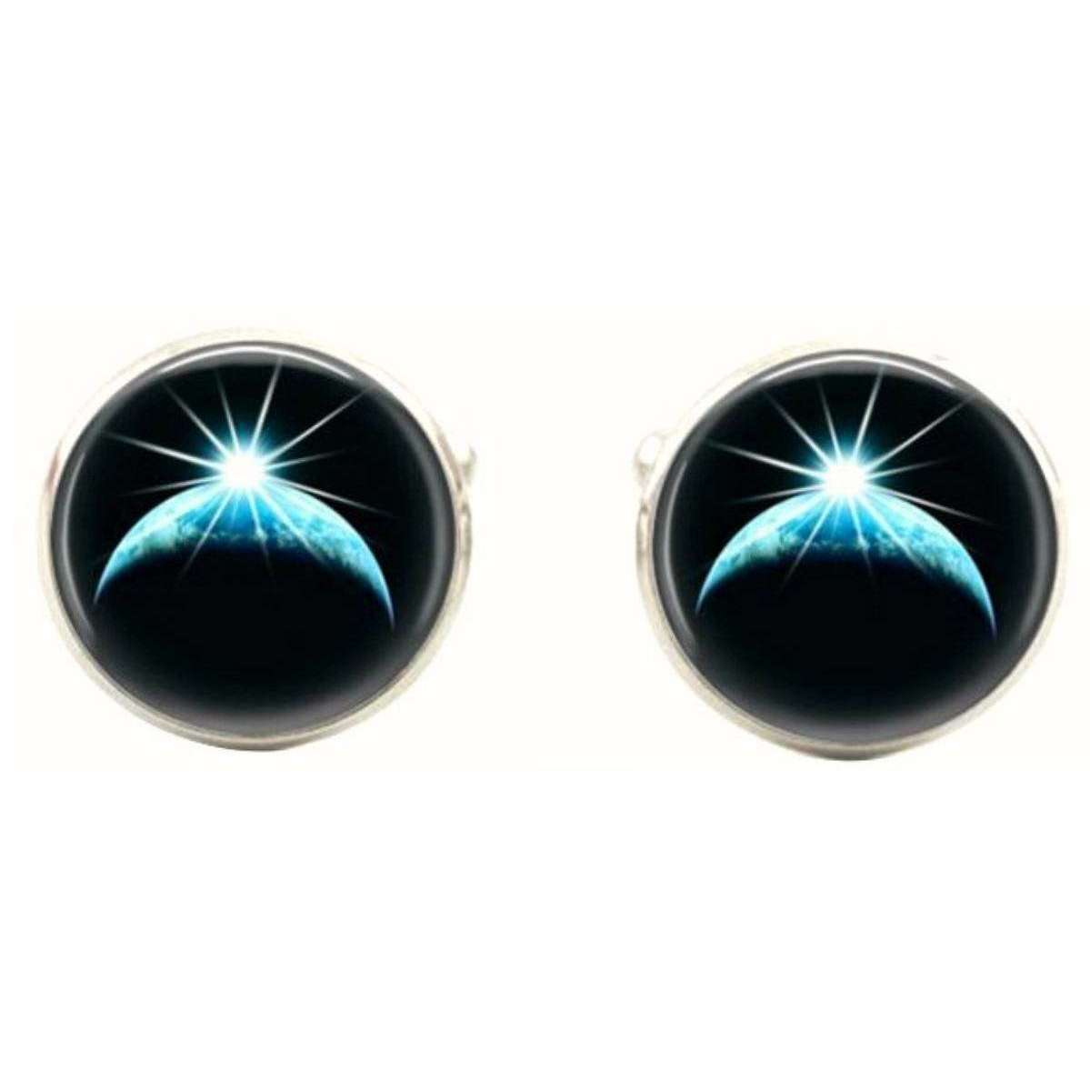 Bassin et Soleil brun se levant sur les boutons de manchette de terre - noir / bleu / blanc