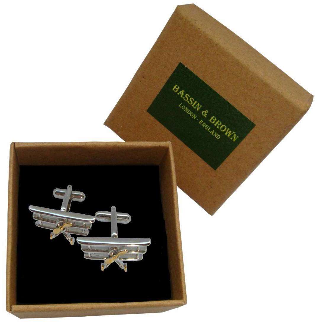 Présentant ces bouffes de manchette triplane pour hommes par Bassin et Brown, ils sont fabriqués à partir de Rhodium Plate de couleur argentée. Tous les boutons de manchette sont complets dans une boîte de boutons de manchette Bassin et brun. Les boutons de manchette Bassin et Brown Triplane - Silver sont conçus pour faire une impression avec leur conception de nouveauté. Ces boutons de manchette maintiendront parfaitement vos poignets ensemble sur ces occasions spéciales grâce à leur dos en T pivotant.