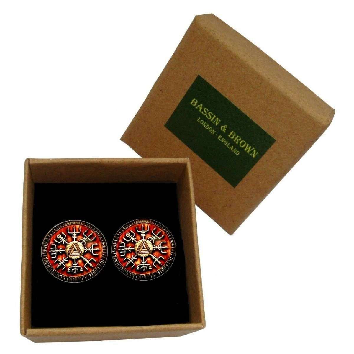 Ces boutons de manchette de symbole viking pour hommes ont été fabriqués à partir de métal plaqué du rhodium et de cabochon en verre, présenté dans une couleur orange et sont de la marque Bassin and Brown. Tous les boutons de manchette sont livrés avec Bassin et Brown Packaging. Les bouillons de manchette Bassin et Brown Viking - Symbole Burnt Orange / Antique Silver sont la décoration personnelle parfaite pour votre chemise. Avec ces boutons de manchette de symboles vikings, vous pouvez ajouter un élément de style et de flair à votre tenue. Environ 18 mm de diamètre, ces boutons de manchette frappants sont enfermés dans du cabochon en verre transparent et présentent une conception de raccord arrière pivotant qui facilite l'ajout et le retrait des chemises. Un article incontournable, ces boutons de manchette font un cadeau de champion pour ceux qui aiment l'histoire de Viking.