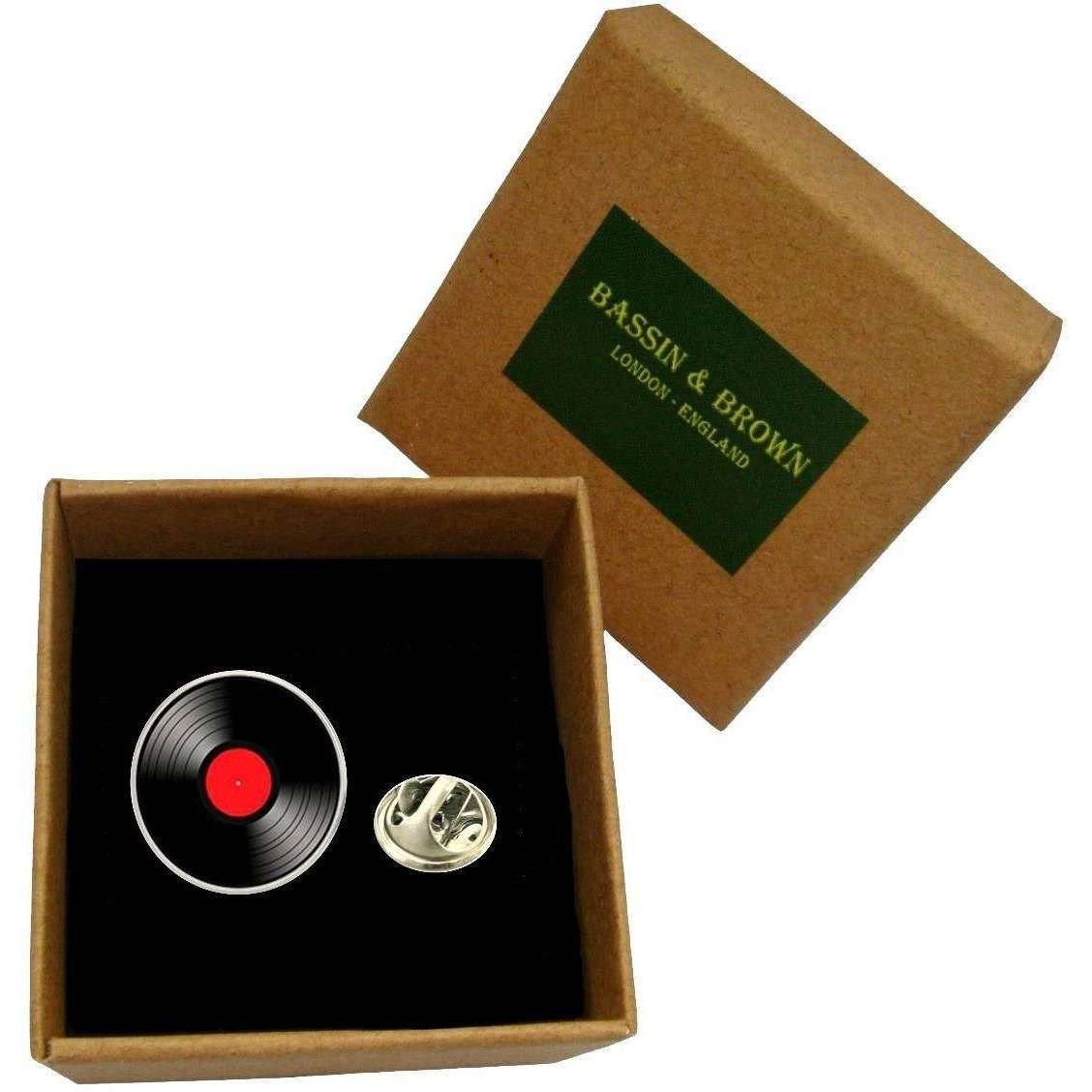 Bassin et épingle à revers à disque en vinyle de bassin et brun - noir