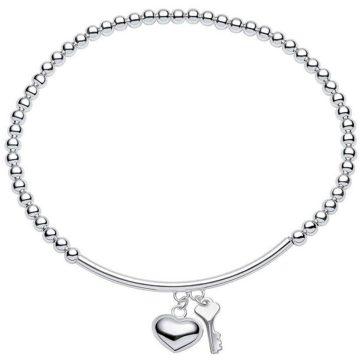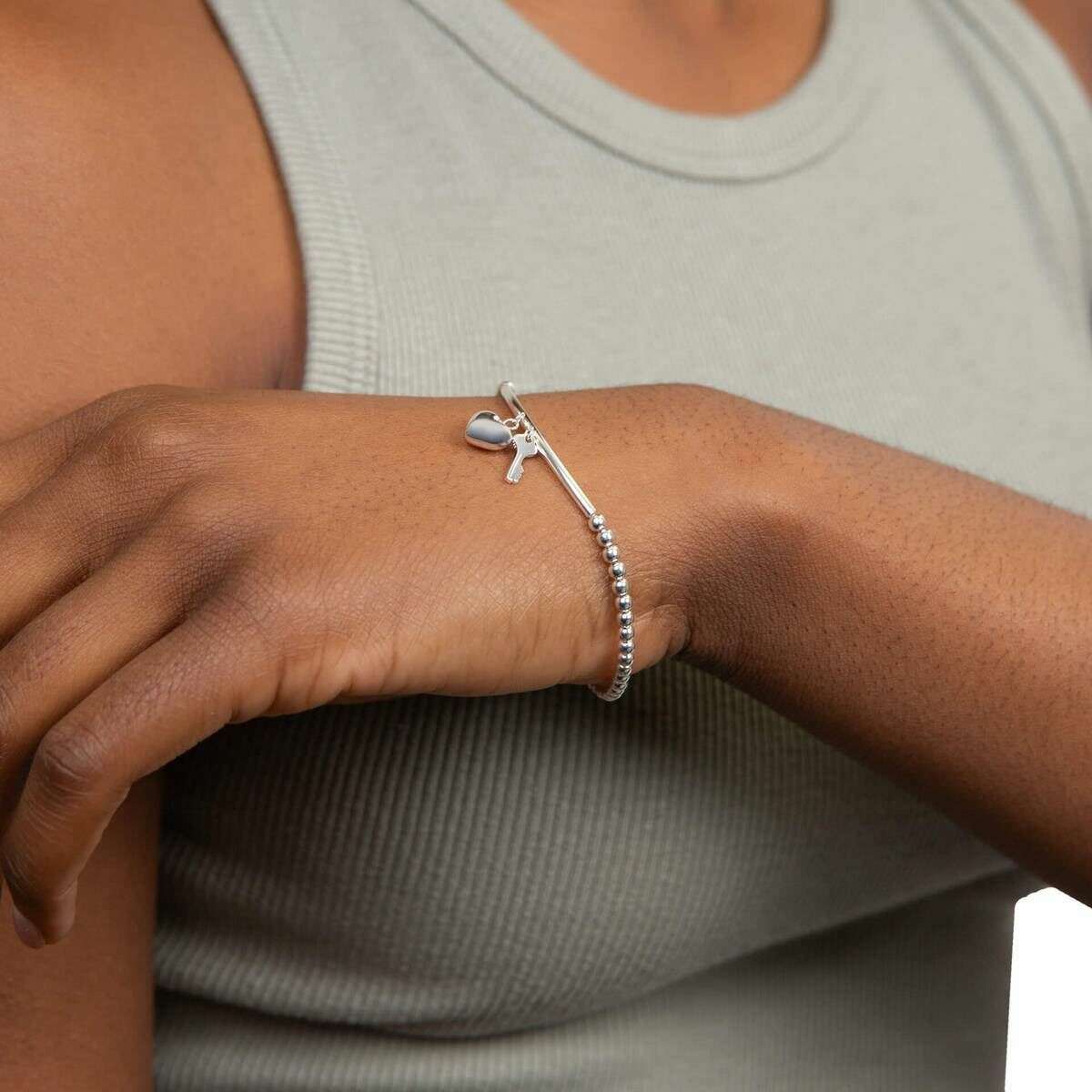 Beginnings Breded Stretch Heart and Key Charms Bracelet - Silver