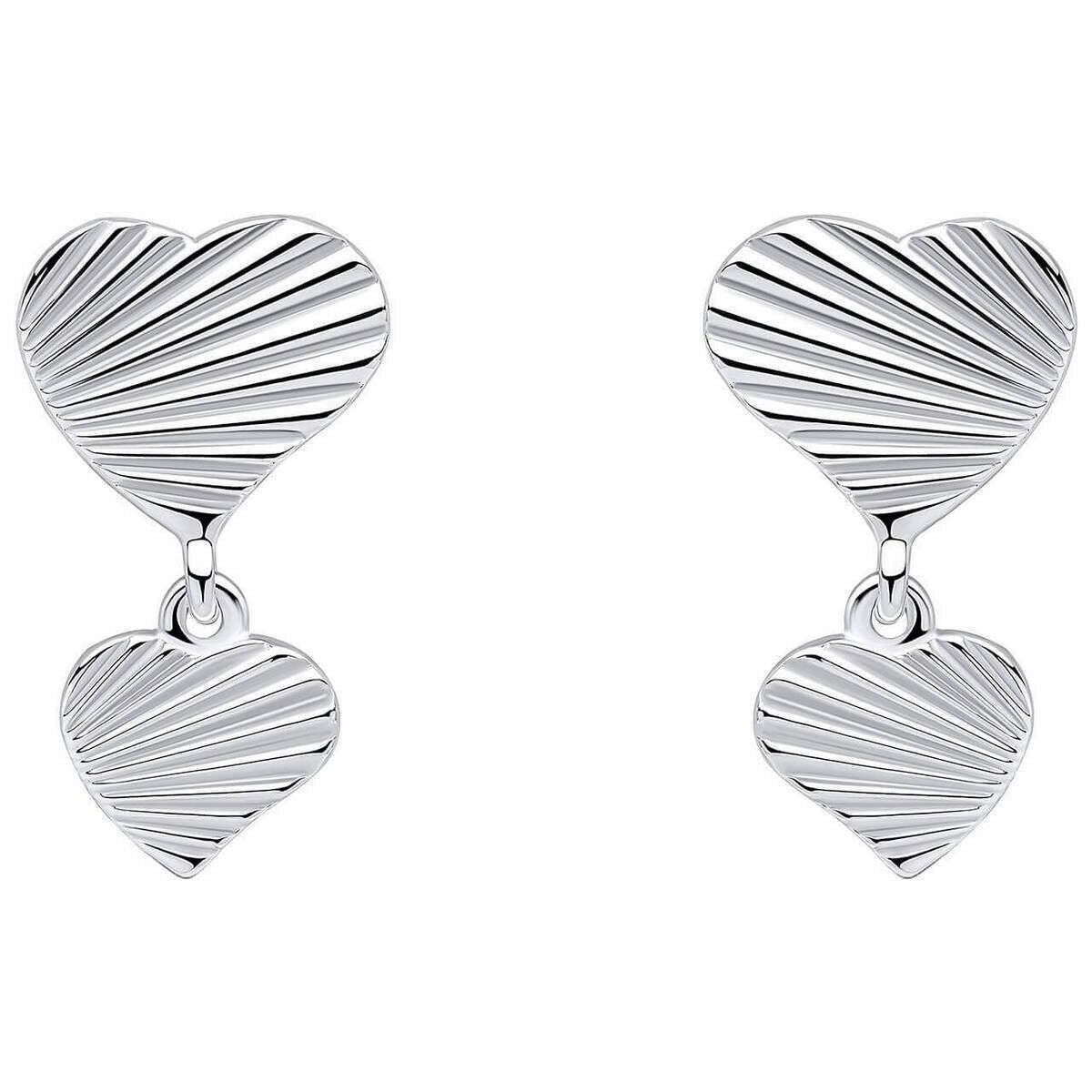 Boucles d'oreilles à double cœur coupées diamant coupées - argent