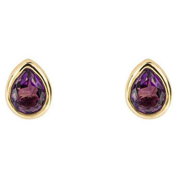 Début de boucles d'oreilles en pierre de naissance semi-précieuses de février - or / violet