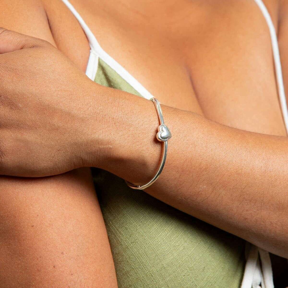 Ce bracelet à cœur à charnière à charnière par les débuts de la marque est fabriqué à partir de l'argent sterling 100% recyclé et est présenté en argent. Il mesure 6 cm x 5 cm (diamètre). Tous les bracelets sont complets avec la boîte de présentation Beginnings. Les débuts à charnière bracelet à cœur - Silver présente un design délicatement incurvé avec un beau cœur au centre du bracelet créant une touche d'amour et d'éternité. Cette pièce délicate et girly est un excellent moyen d'élever et de terminer toute tenue. Fabriqué à partir de Skin Secyled Recycle Recycle Sterling s'assure que ce bracelet est de haute qualité et luxueux tout en ayant un éclat étonnant.