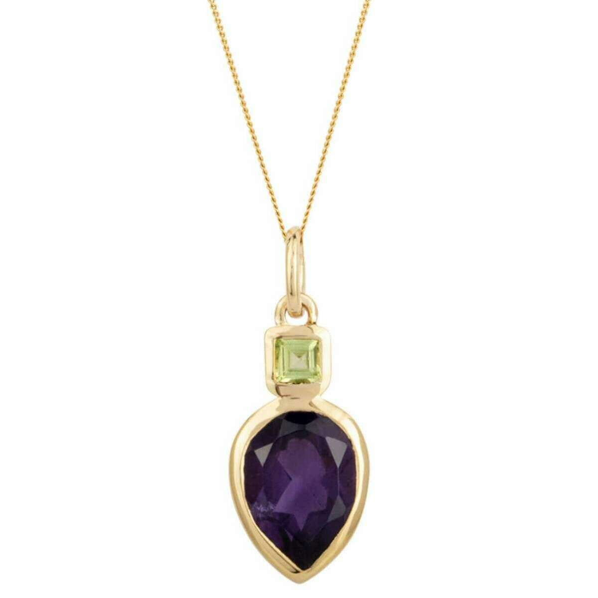 Beginnings Iris Petal Drop Pendant - Gold / Purple / Green