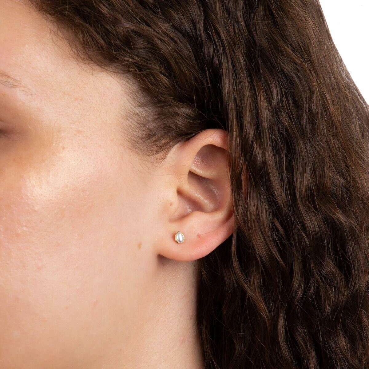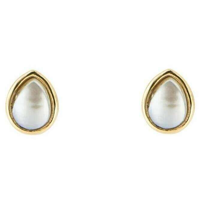 Début de boucles d'oreilles en pierre de naissance semi-précieuses de juin - Gold / Pearl