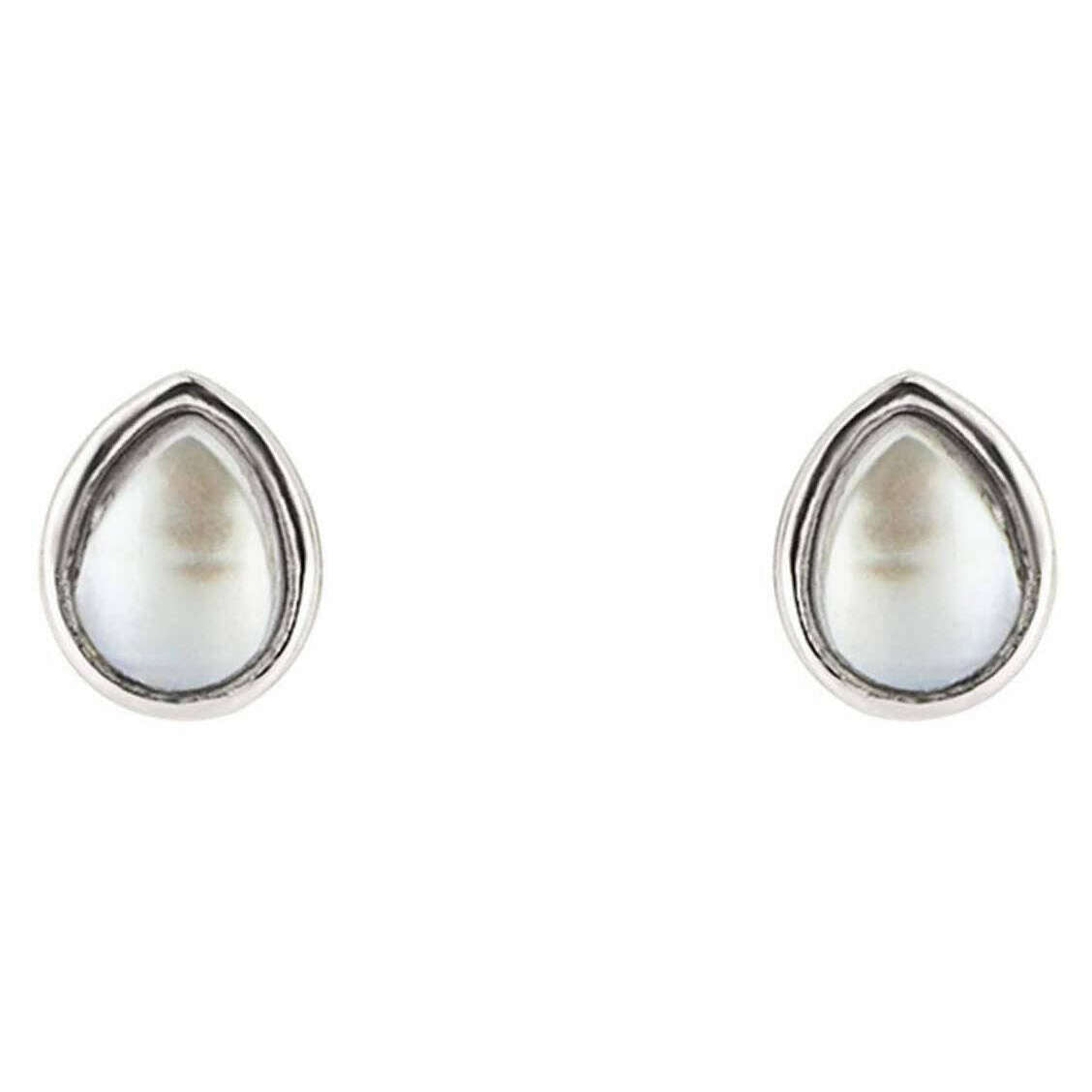 Début de boucles d'oreilles en pierre de naissance semi-précieuses de juin - Silver / Pearl