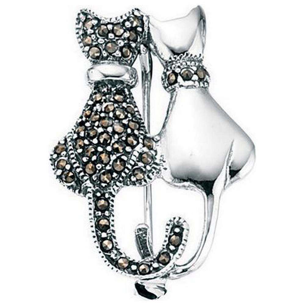 Beginnings Marcasite et Broche à double chat ordinaire - Argent