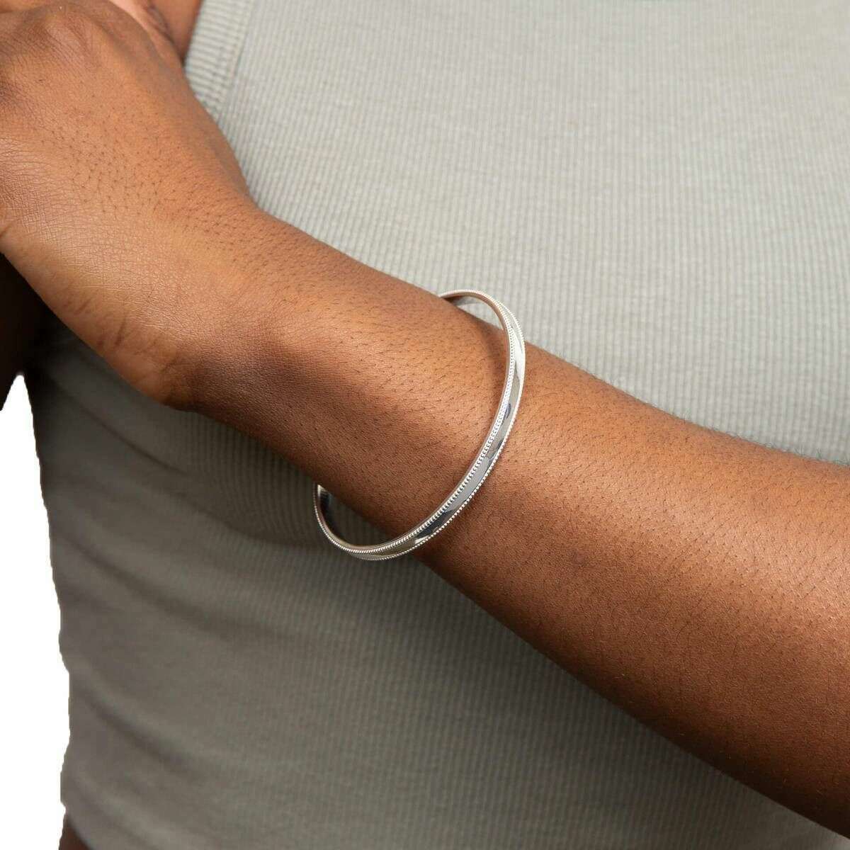 Présenté par les débuts de la marque, ce bracelet Silver Women Millegrain 5 mm est fabriqué à partir de l'argent sterling 100% recyclé. Il mesure 6,85 cm x 6,85 cm (diamètre). Tous les bracelets sont complets avec la boîte de présentation Beginnings. Le bracelet Millegrain de 5 mm Beginnings - Silver est un simple bracelet intemporel avec une touche supplémentaire de mille-réseaux détaillant les deux bords. Ce détail ajoute une apparence délicate et complexe idéale pour correspondre à tout accessoire pour les looks de jour et de nuit. Fabriqué à partir de Skin Secyled Recycle Recycle Sterling s'assure que ce bracelet est de haute qualité et luxueux tout en ayant un éclat étonnant.