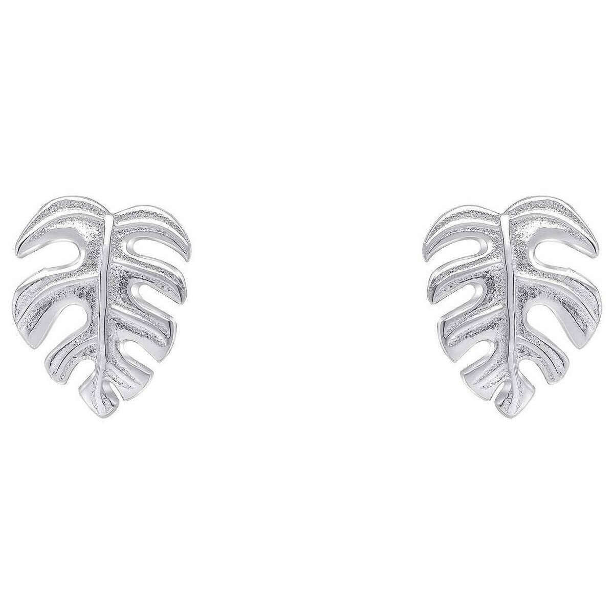 Début de boucles d'oreilles de goujon à feuilles de feuilles Monstera - Silver
