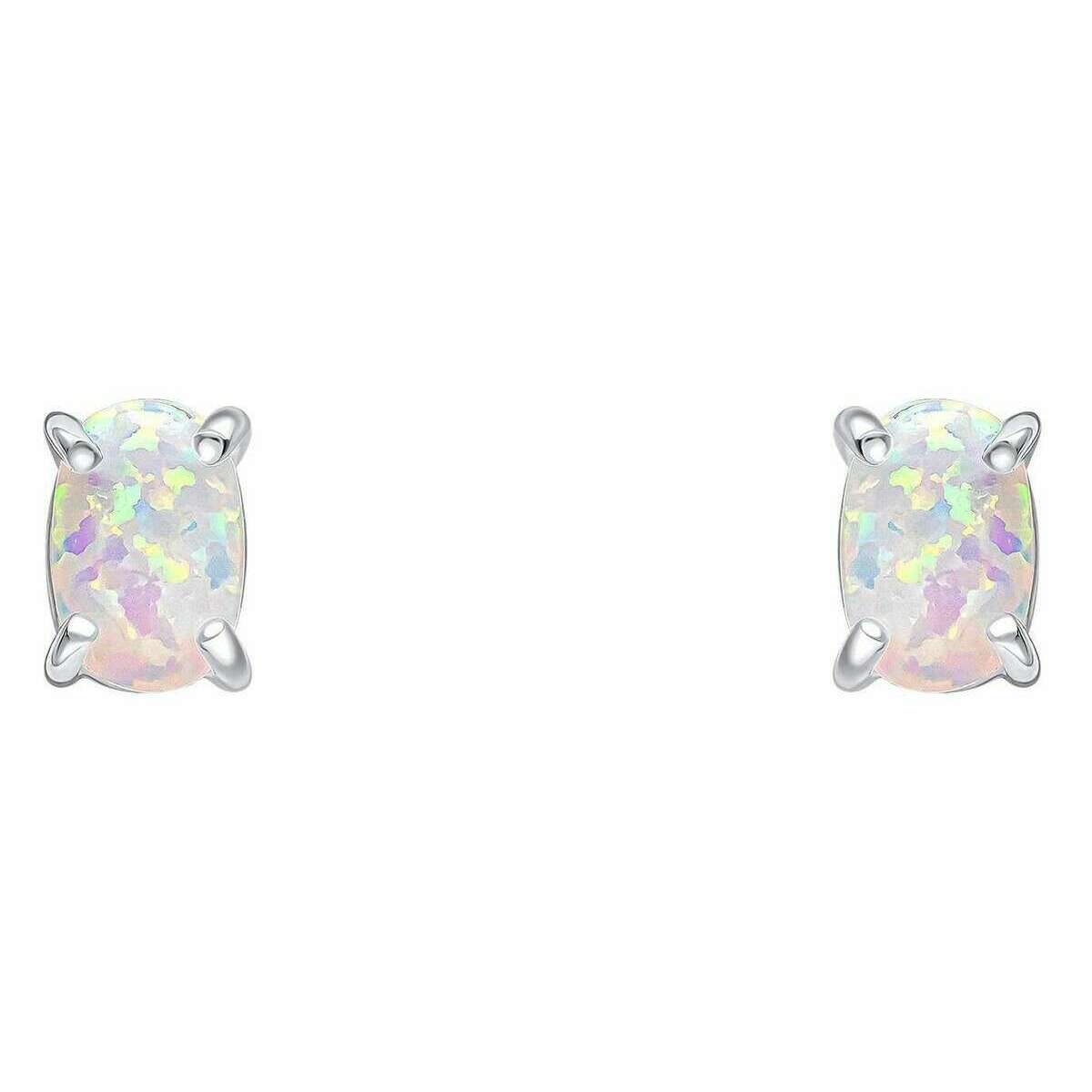 Boucles d'oreilles ovales d'opale ovale - argent / blanc