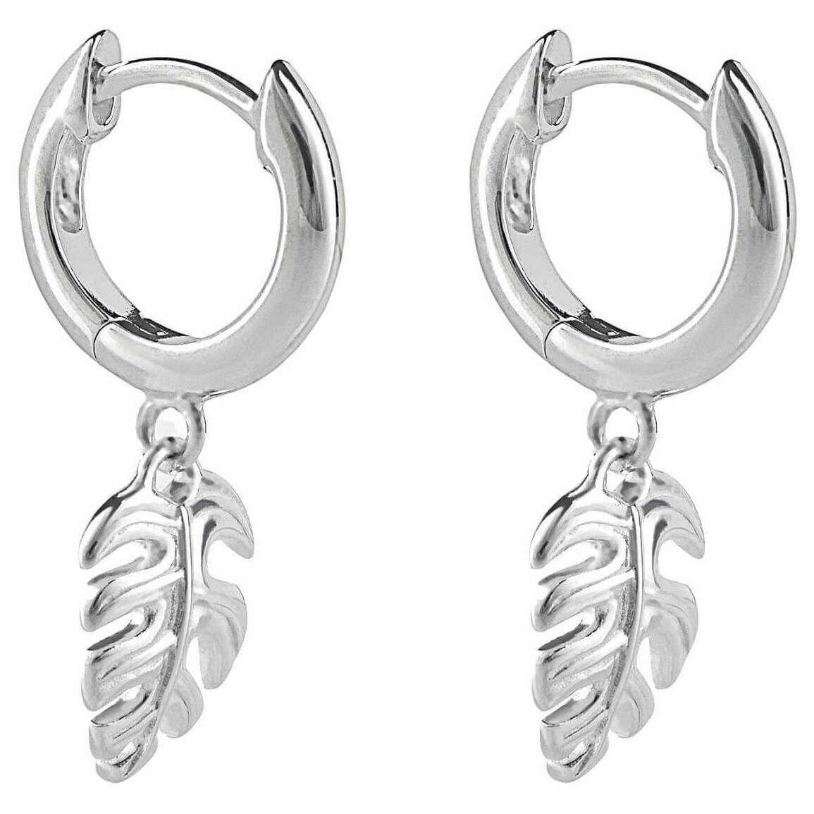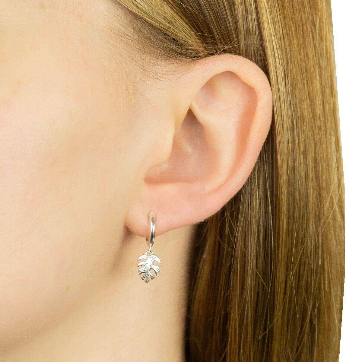 Boucles d'oreilles de cerceau de charme de feuille de palmier - argent