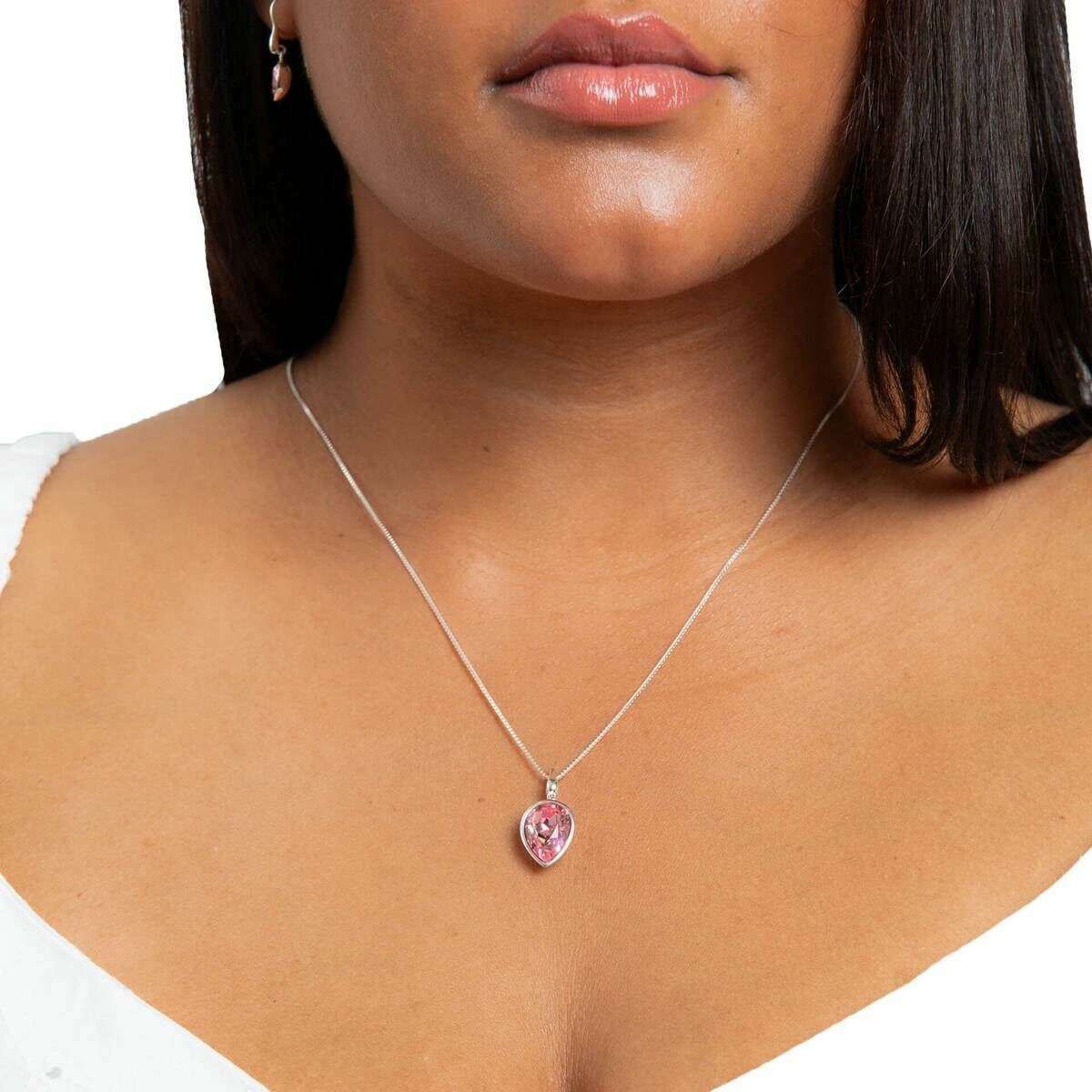Beginnings Parone Shape Crystal Pendant - argent / rose rose