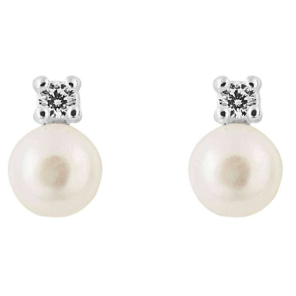 Boucles d'oreilles de goujon de perle et de cristal - argent / blanc