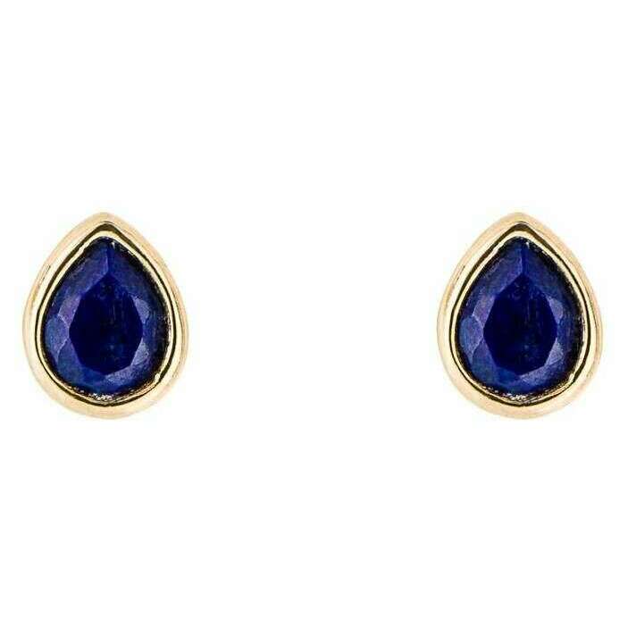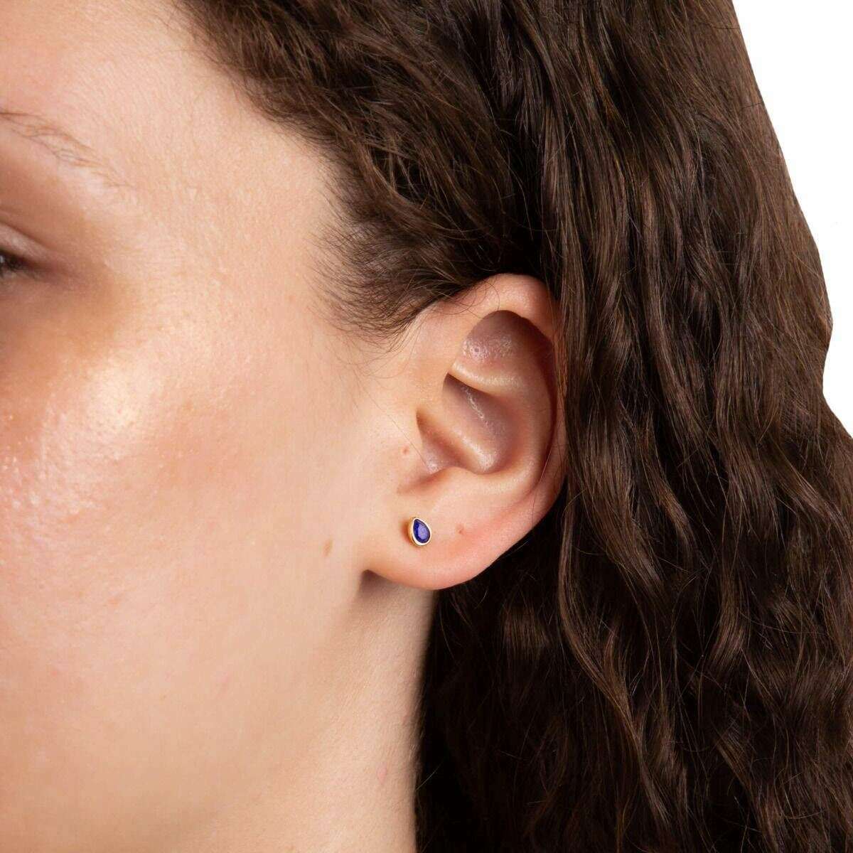 Début de boucles d'oreilles en pierre de naissance semi-précieuses de septembre - or / bleu