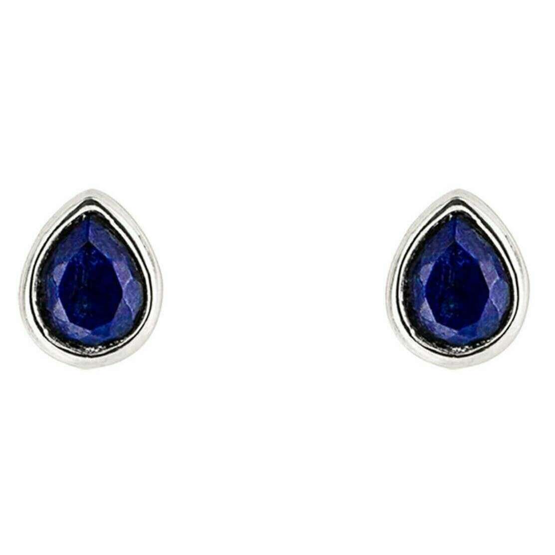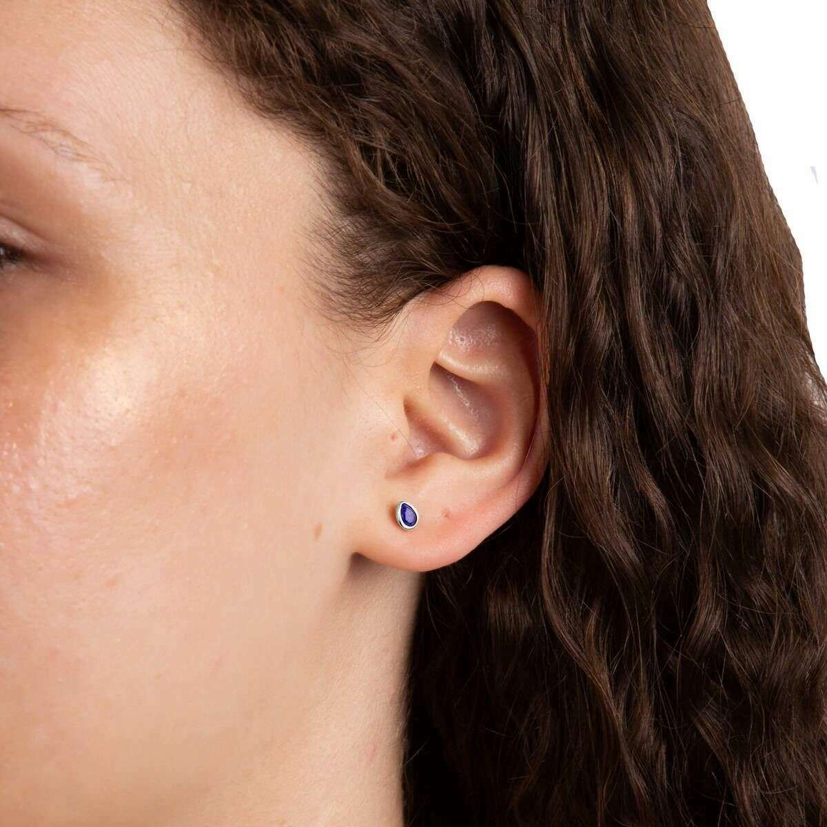 Début de boucles d'oreilles en pierre de naissance semi-précieuses de septembre - Argent / bleu