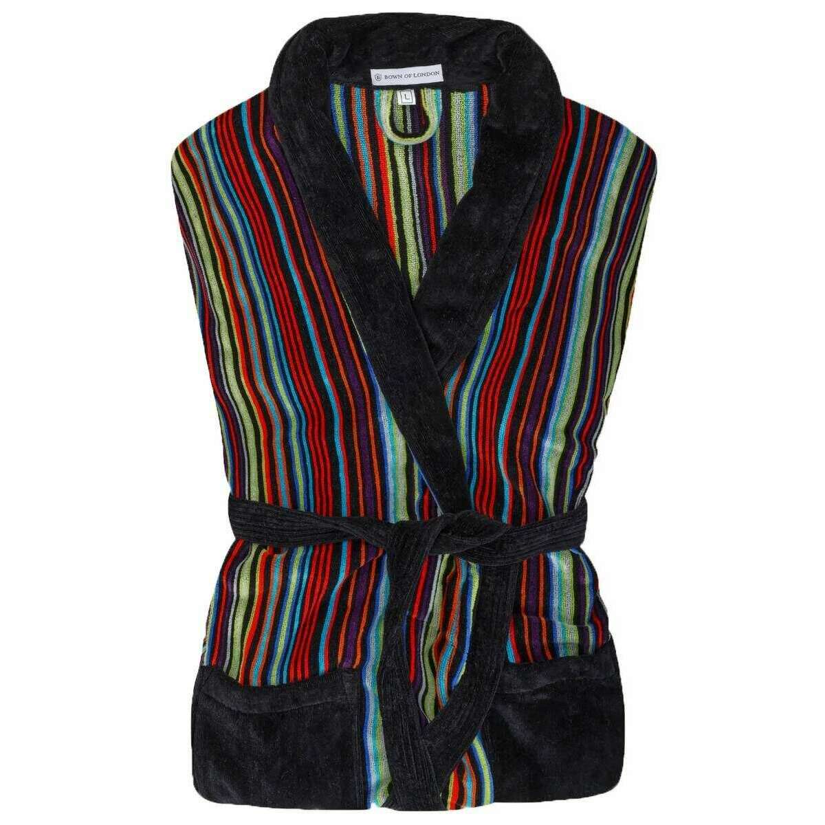 Cette robe de chambre Dundee pour hommes bien faite de Bown of London est disponible en couleur noire / multicolore et est fabriquée à partir de coton égyptien à 100% 400 gsm. De plus, la robe de sauvetage noir / multicolore est conçue dans un motif rayé, il est recommandé de se laver sur un cycle de coton de 40 degrés, de ne pas utiliser de revitalisant en tissu et de ne pas sécher pour garder cette robe en bon état. Toutes les robes de chambre sont complètes avec Bown of London Packaging. Le Bown of London Dundee Robed - Black / Multi-Colour dispose d'un style de bande unique avec des détails noirs pour ajouter la sophistication et il est fonctionnel avec ses deux poches avant, collier, longue ceinture et poignets à dos pliant. Le matériau en coton doux et épais assure une chaleur et un confort maximum. Cette robe de chambre mettra à niveau votre collection et vous fera vous sentir luxueux à chaque usure.
