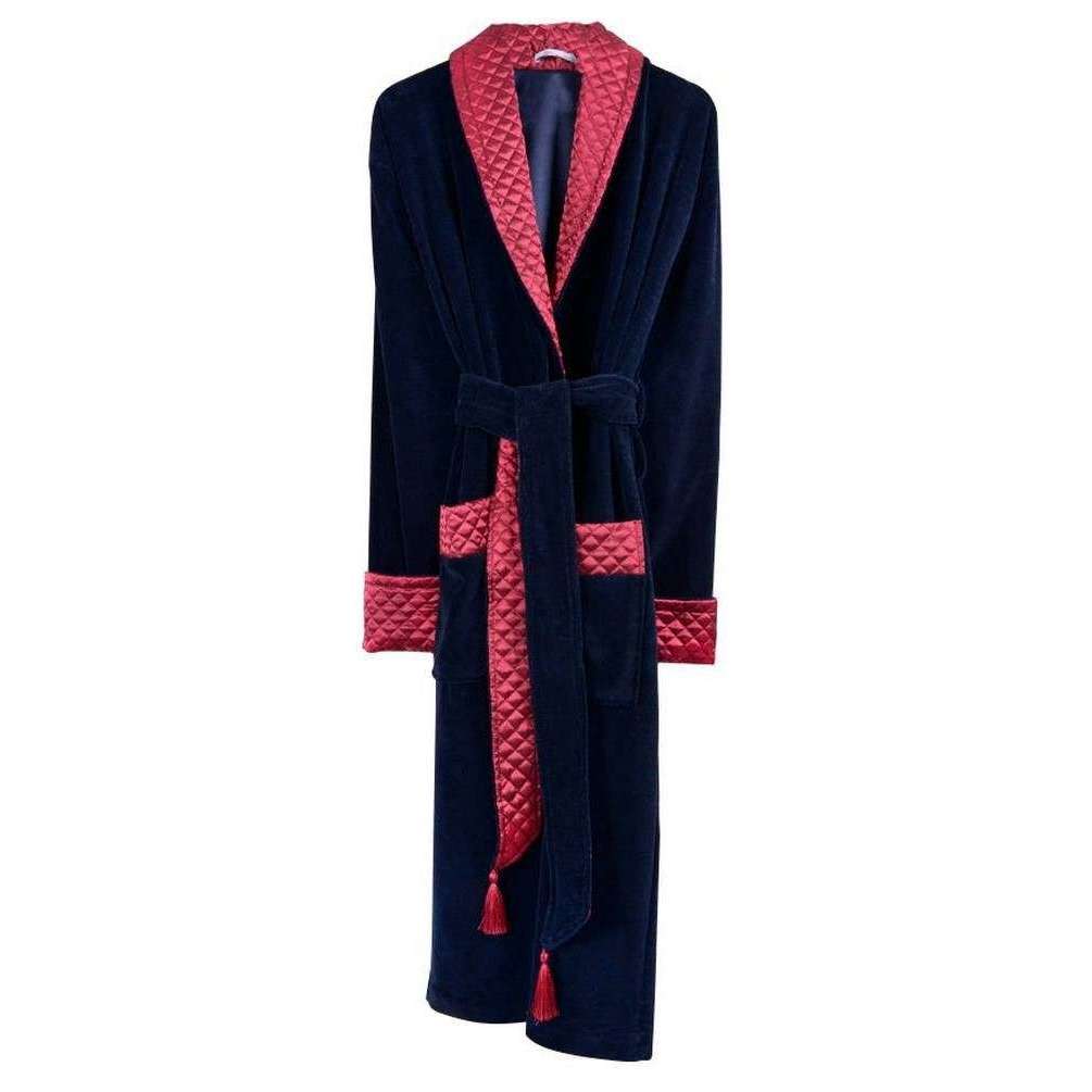 Bown of London Mayfair Long Velvet Smoking Veste - Marine