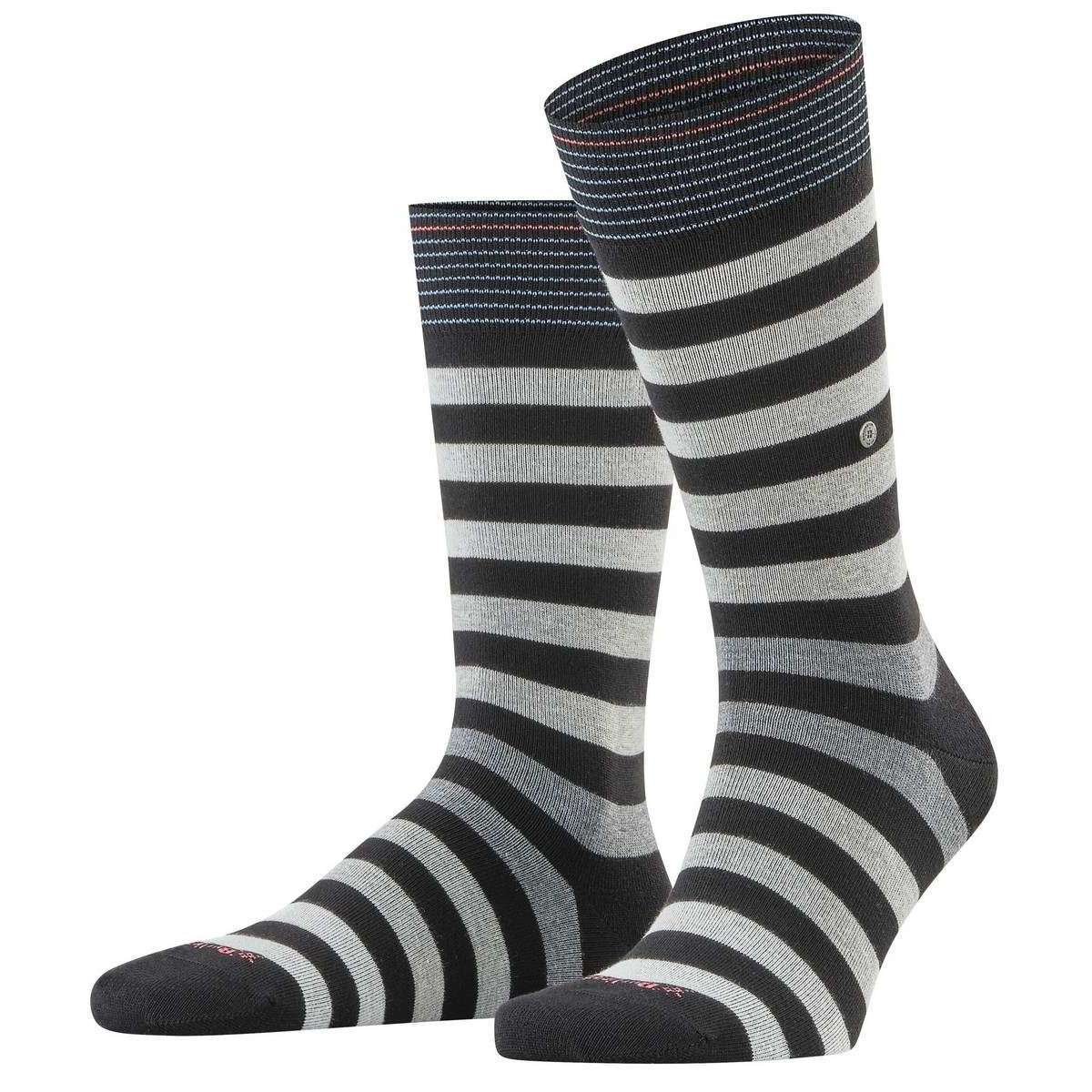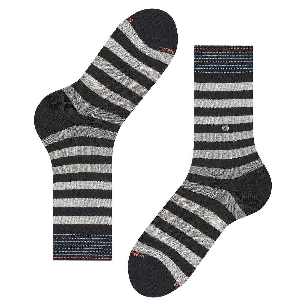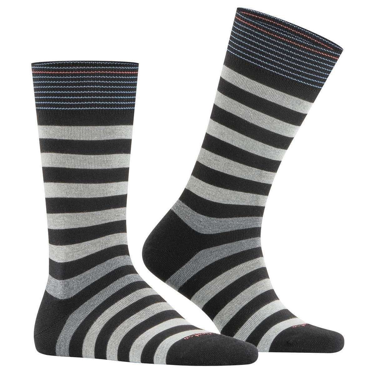 Introducing these men's blackpool socks by Burlington, they are manufactured from 80% cotton (organic), 18% polyamide and 2% elastane in a black colour. Also the black socks are designed in a striped pattern, It is recommended to wash at 40 degrees to keep these socks in good condition. All the socks come complete with burlington sock tags. The Burlington Blackpool Socks - Black feature block stripes that are complemented with a colourful contrasting cuff that is stylish and extremely comfortable to wear. Made from sustainable yams and combed cotton, these fine gents socks are versatile for any occasion. Both the Burlington logo on the toe and the Burlington clip finish off these socks, bringing a boost to any and all wardrobe choices.