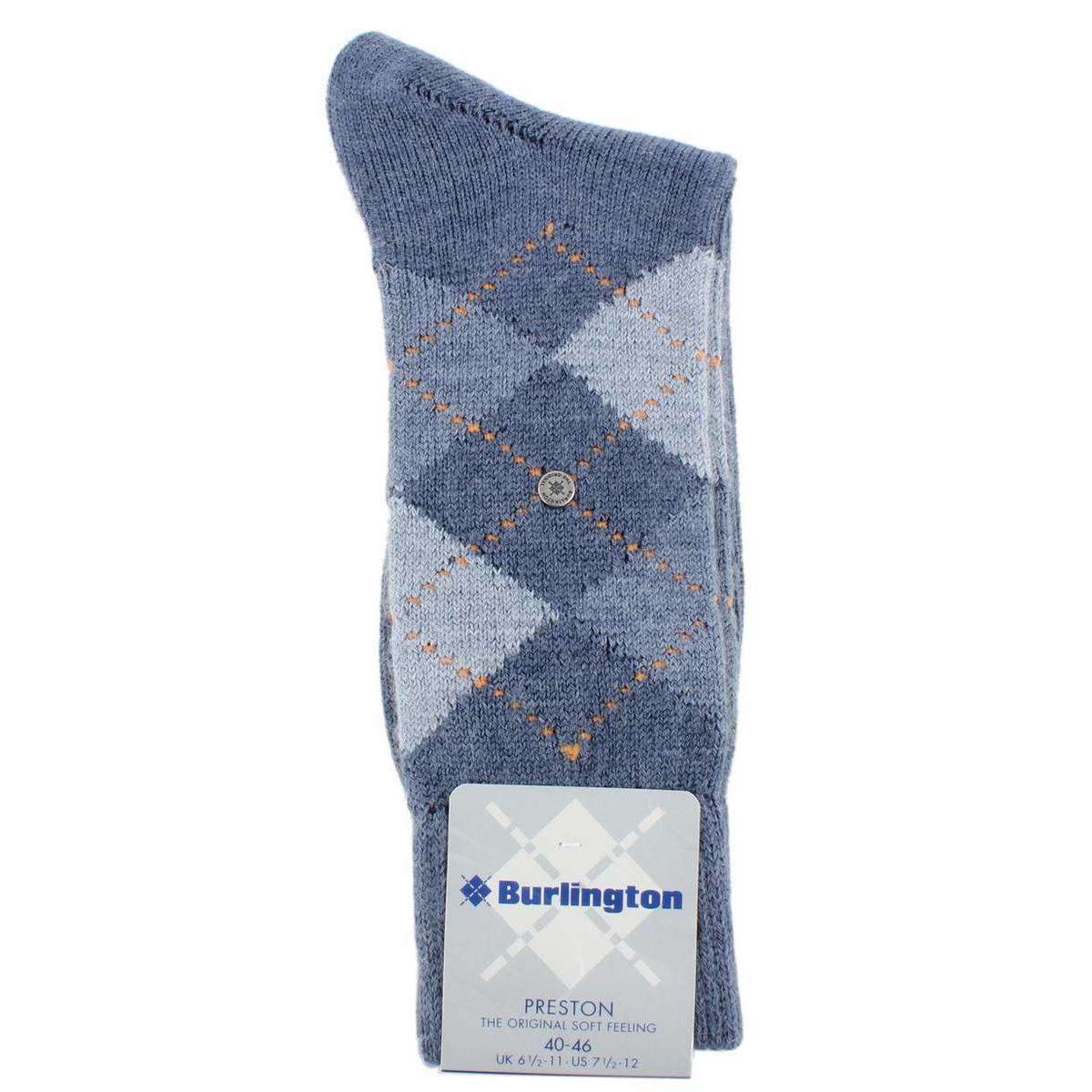 The Burlington Preston socks in grey and orange have been brilliantly designed with a classical argyle pattern. The thick socks have been crafted from the finest yarn to produce a comfortable piece, ideal to wear casually or for keeping your feet warm through the cold winter days. The superb choice of colour combinations makes this a very tasteful piece. The socks use a hand linked toe as well as a reinforced heel and toe for paramount durability. Finished off with the Burlington metal ankle stud, these socks will certainly surpass your expectation.