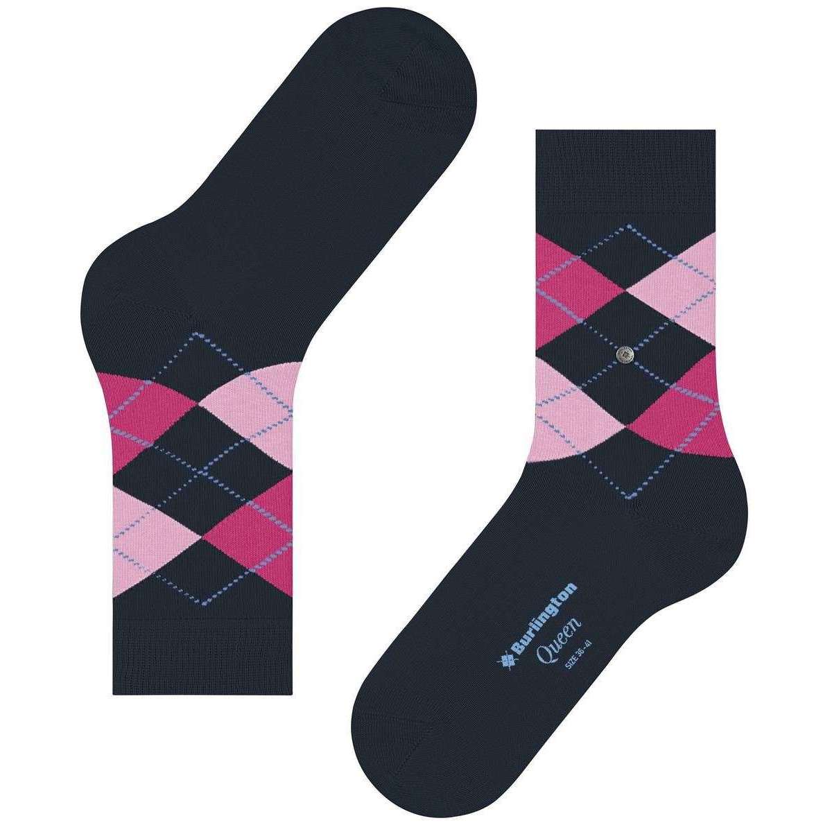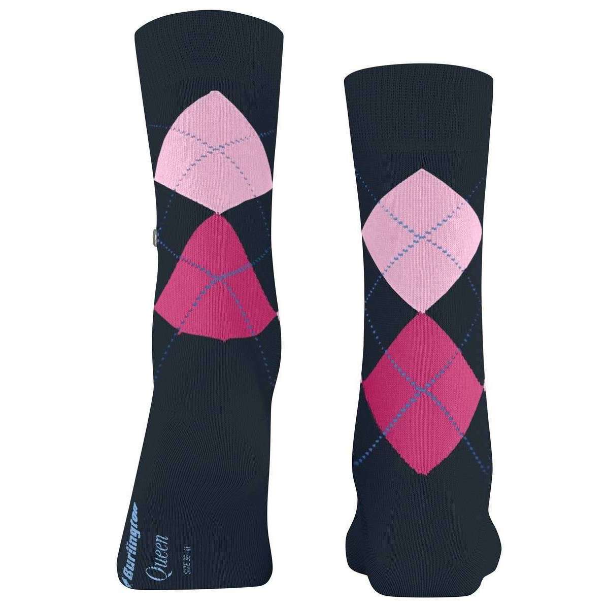 These queen socks for women are fashioned by the brand Burlington in a blue colour and are made from 67% organic cotton and 33% polyamide (20% recycled). Also the marine navy socks are designed in a argyle pattern, It is recommended to wash at 40 degrees to keep these socks in good condition. All the socks come complete with burlington sock tags. The Burlington Queen Socks - Marine Navy are the perfect combed cotton socks for all purposes. These socks stretch and conform to the feet for a relaxed fit. The stunning colourway and the classic Burlington clip on the ankle makes these socks great styling options for any season. Designed to provide a natural comfortable wear and crafted from sustainable yarns, your feet will be happy in Queens.